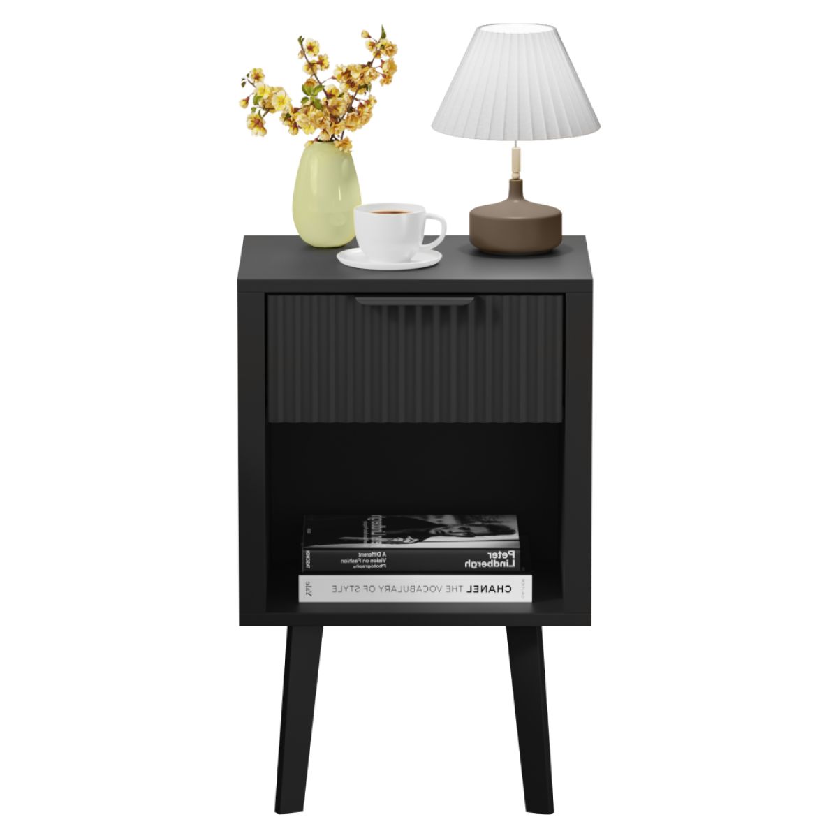 Material: DTD laminat Culoare: neagră Dimensiuni (lxAxh): 39x29x60,5 cm Portanţă: 10 kg Compartiment de depozitare deschis Înălţimea compartimentului de depozitare deschis: 21,5 cm Capacitatea spaţiului de depozitare deschis: 10 kg Sertar Portanţă sertar: 5 kg Mânere din plastic Culoarea mânerului: negru Pe picioare Înălţimea picioarelor: 22 kg Design modern Recomandăm ataşarea de perete Livrat dezasamblat