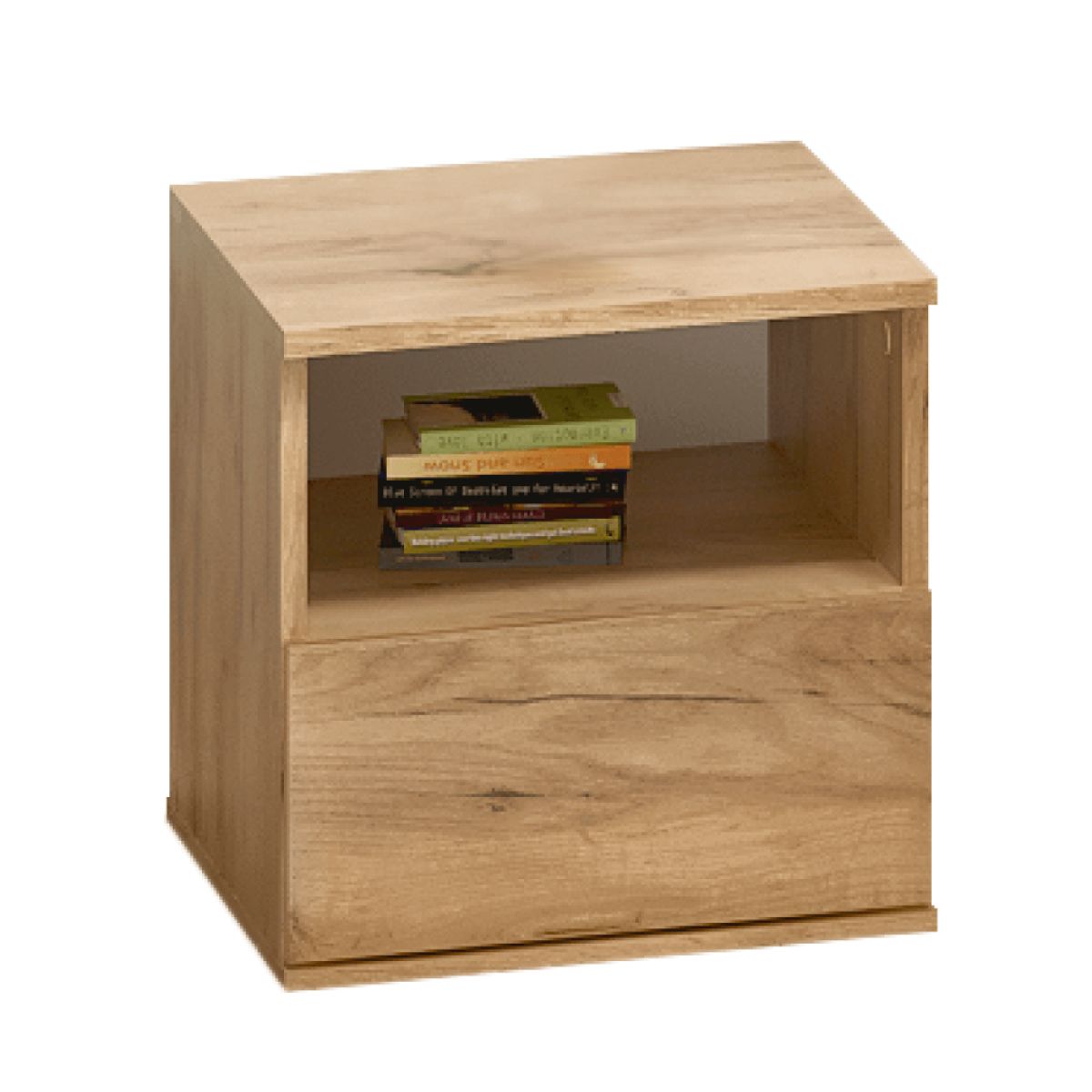 Material: DTD laminat Culoare: stejar craft auriu Dimensiuni (Lxlxh): 40x40x40 cm Grosime DTD laminat: 1,6 cm Sertar Înălţime sertar: 19 cm Portanţă sertar: 5 kg Zonă de depozitare deschisă Înălţimea zonei de depozitare deschise: 17,6 cm Picioare din plastic - glisoare Portanţă: 10 kg Glisoare Design modern Produs slovac de calitate Livrat dezasamblat