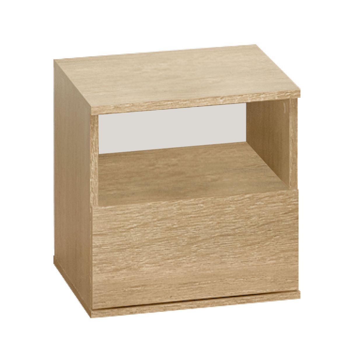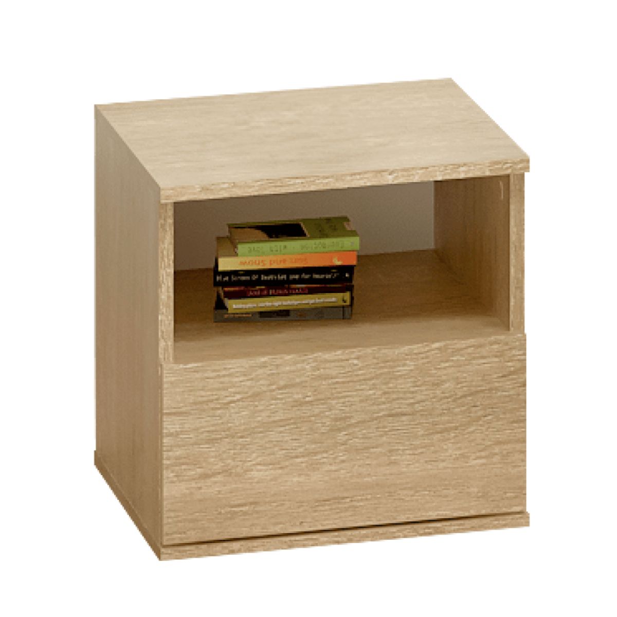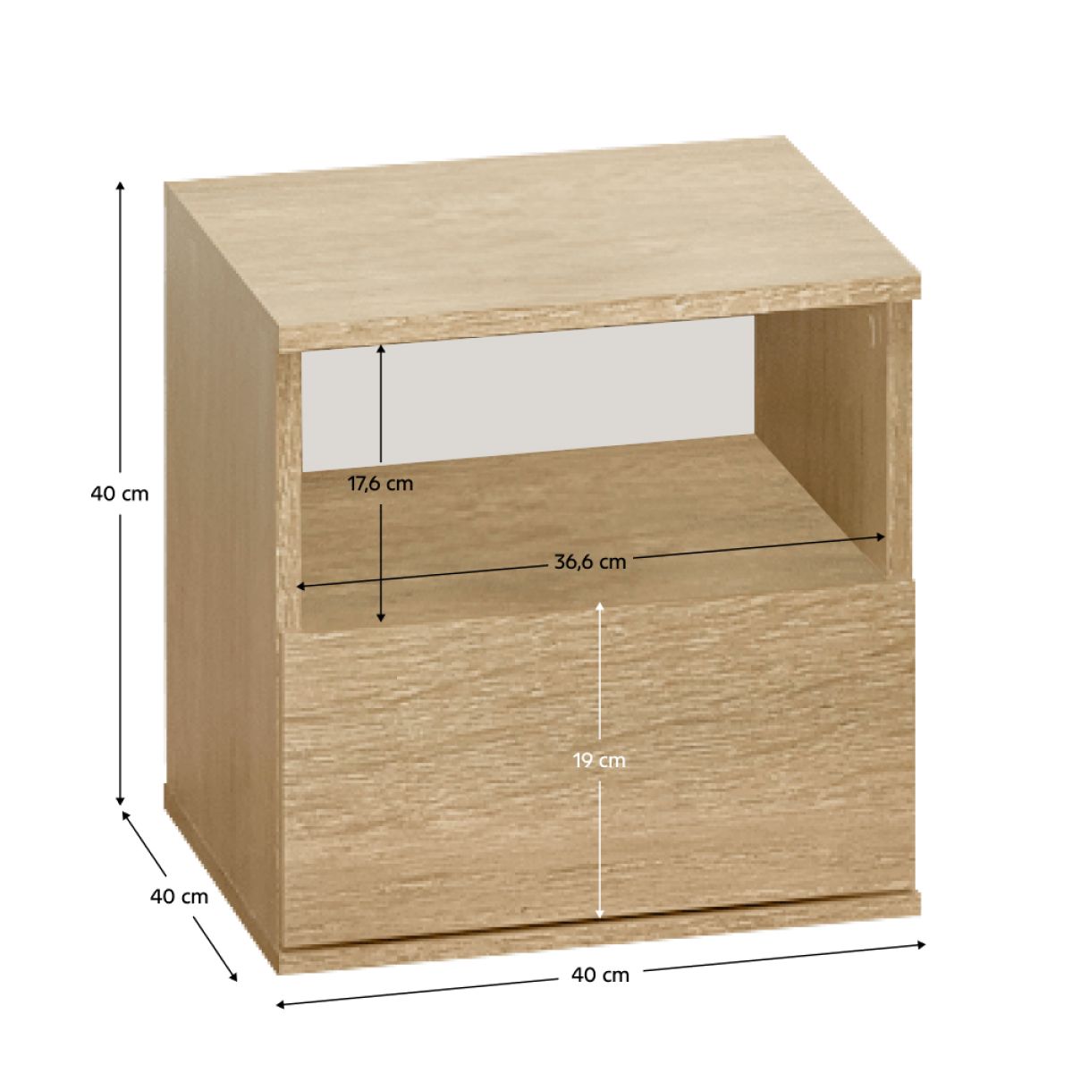 Material: DTD laminat Culoare: stejar sonoma Dimensiuni (Lxlxh): 40x40x40 cm Grosime DTD laminat: 1,6 cm Sertar Înălţime sertar: 19 cm Portanţă sertar: 5 kg Zonă de depozitare deschisă Înălţimea zonei de depozitare deschise: 17,6 cm Picioare din plastic - glisoare Portanţă: 10 kg Glisoare Design modern Produs slovac de calitate Livrat dezasamblat
