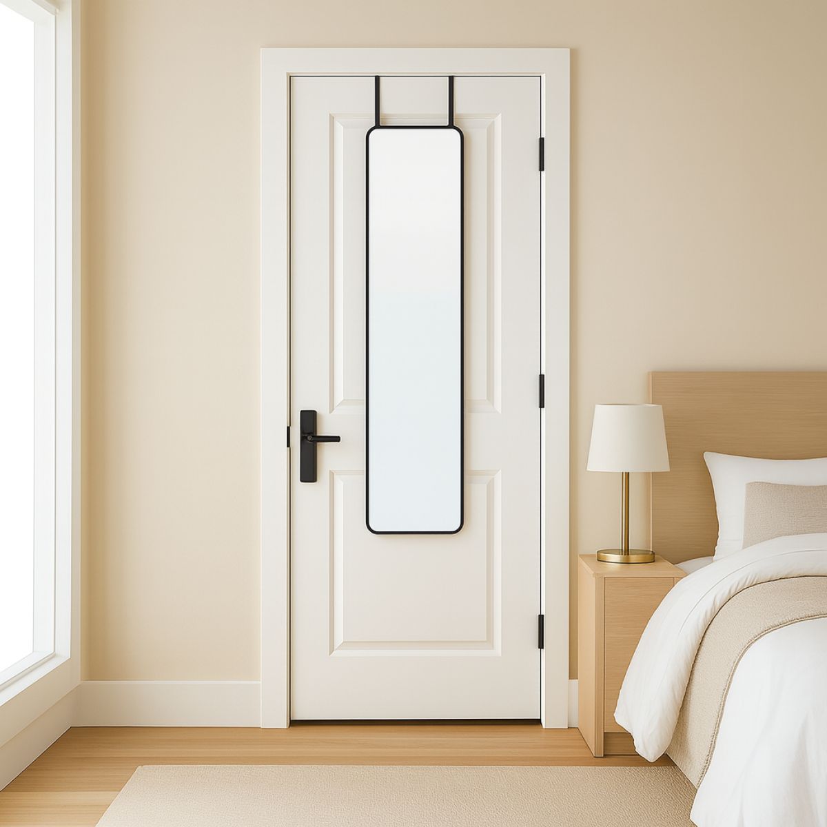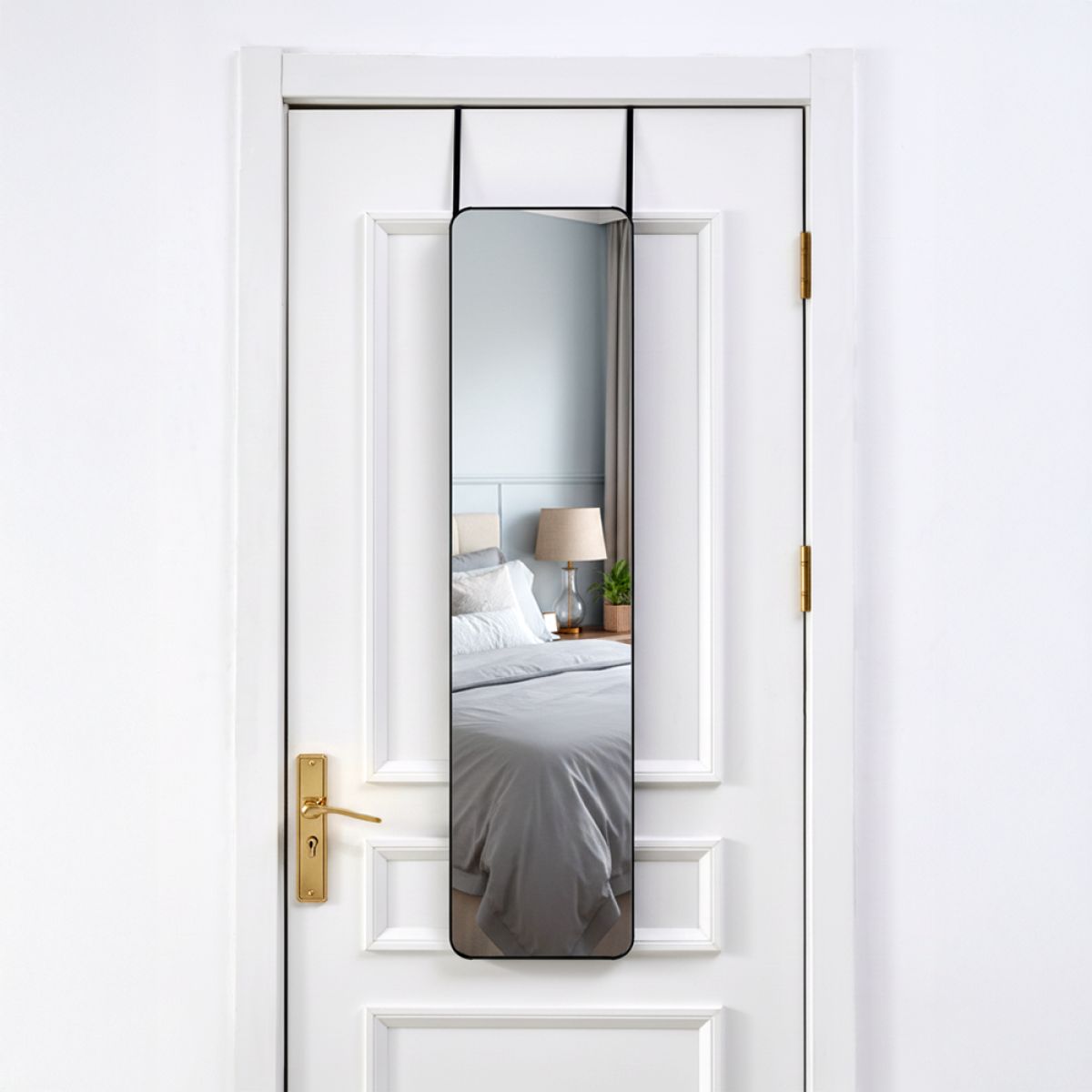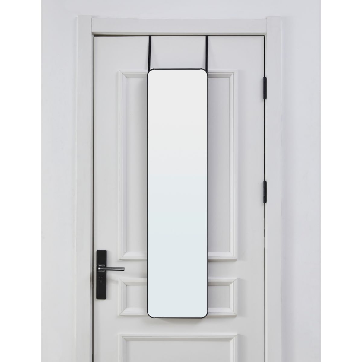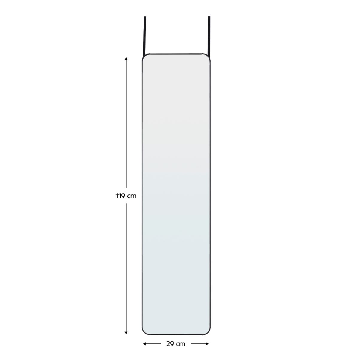 Material:aluminiu/metal/sticlă Culoare: neagră Dimensiuni (lxAxh): 29x1,5x119 cm Livrat cu cârlige de uşă Lungimea cârligului: 35,5 cm Potrivit pentru uşi cu grosime maximă de: 4,5 cm Portanţă cârligului: 10 kg Înălţime reglabilă pentru a se potrivi nevoilor dumneavoastră Elegant Livrat dezasamblat