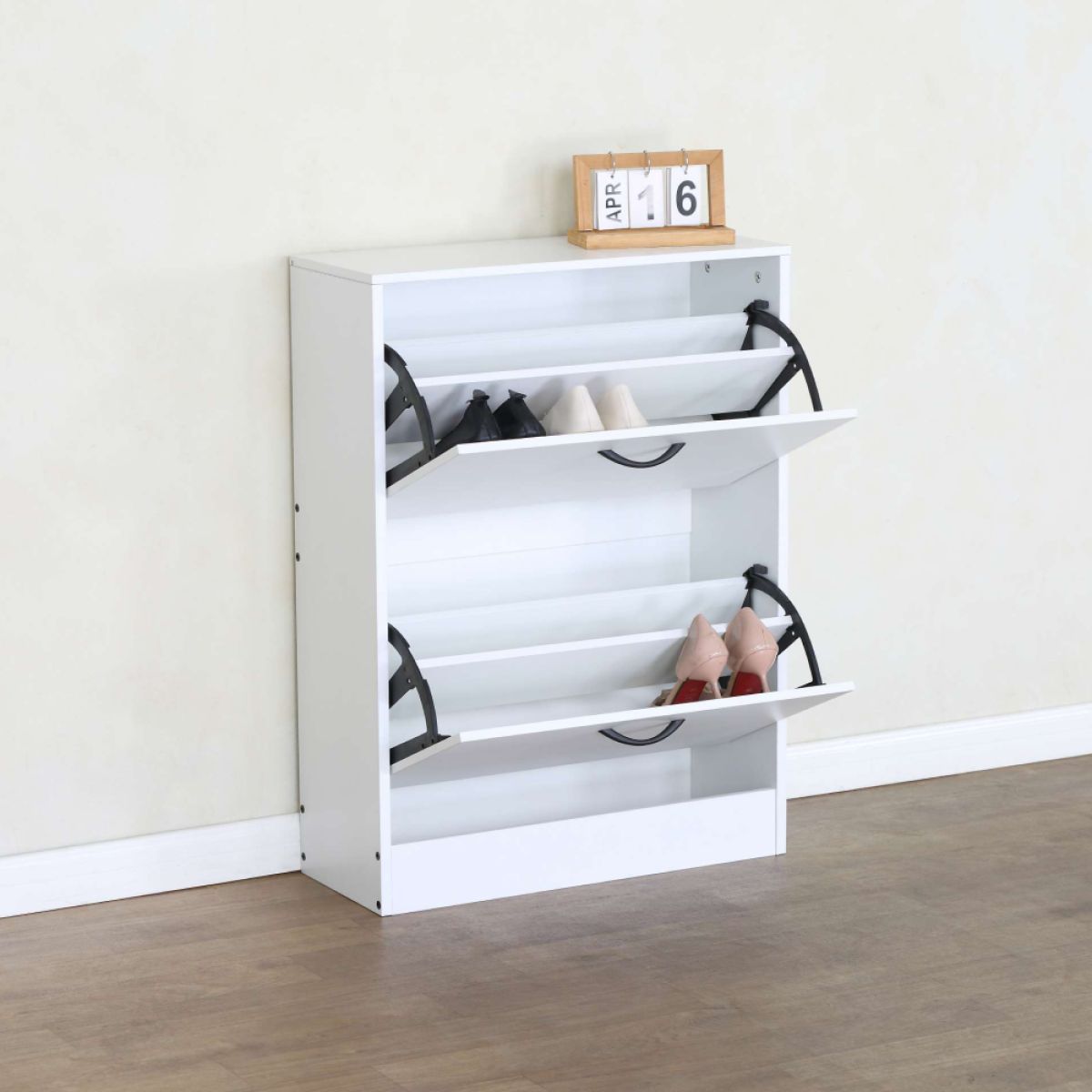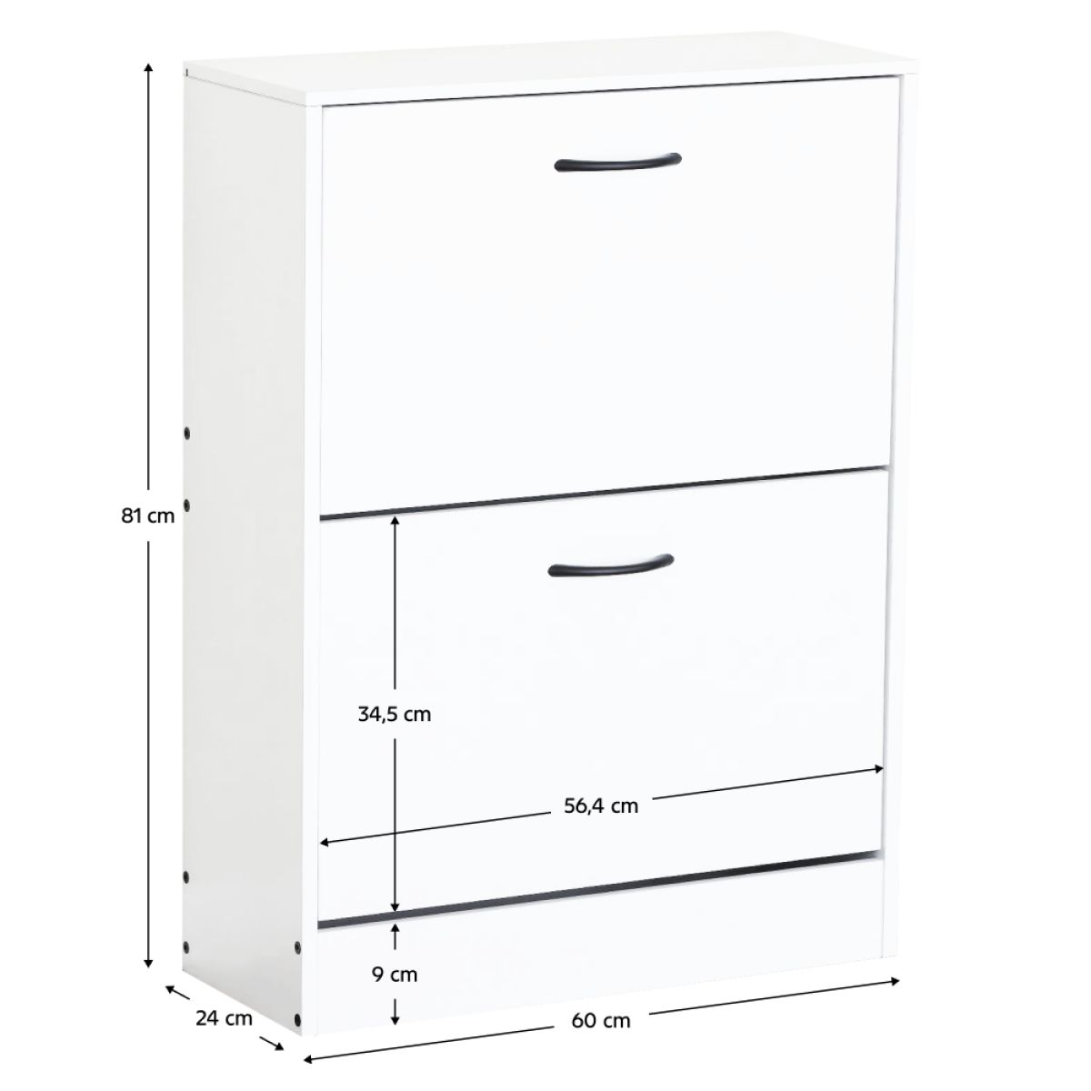 Material: PAL/plastic Culoare: alb Dimensiuni (lxAxh): 60x24x81cm Grosime material: 1,2-1,5 cm Două sertare basculabile Sertar împărţit în 2 părţi Înălţimea compartimentului inferior de la podea:9 cm Dimensiunile sertarului basculabil (lxL): 56,4x34,5 cm Portanţa sertarului basculabil: 6 kg Portanţa blatului superior: 10 kg Design modern Practic Livrat dezasamblat