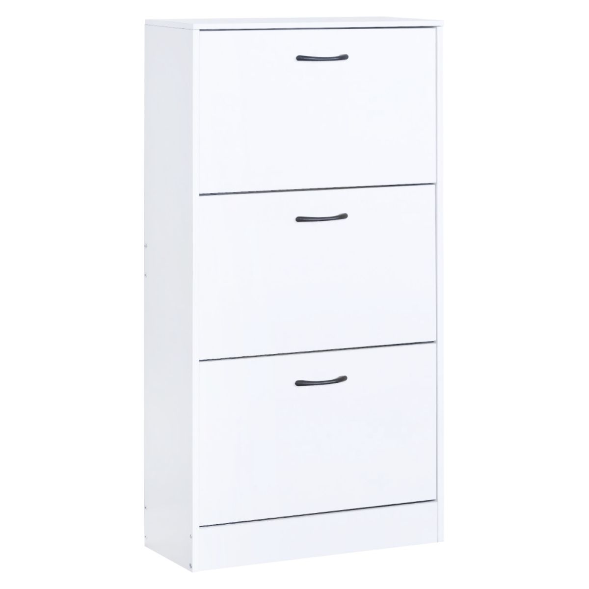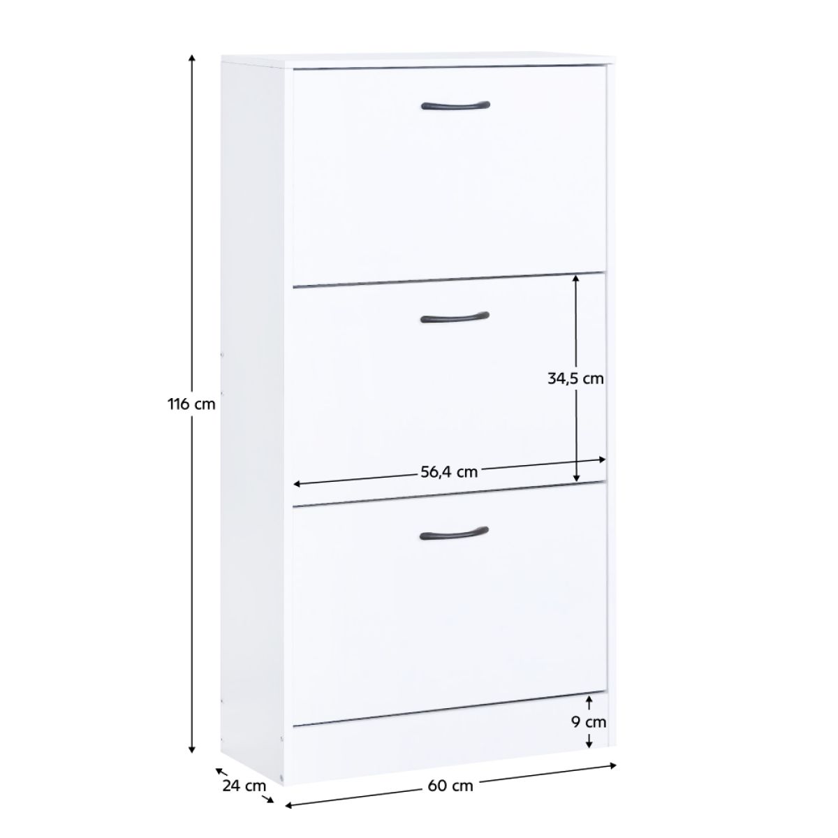 Material: PAL/plastic Culoare: alb Dimensiuni (lxAxh): 60x24x116 cm Grosime material: 1,2-1,5 cm Trei sertare basculabile Sertar împărţit în 2 părţi Înălţimea compartimentului inferior de la podea:9 cm Dimensiunile sertarului basculabil (lxL): 56,4x34,5 cm Portanţa sertarului basculabil: 6 kg Portanţa blatului superior: 10 kg Design modern Practic Livrat dezasamblat