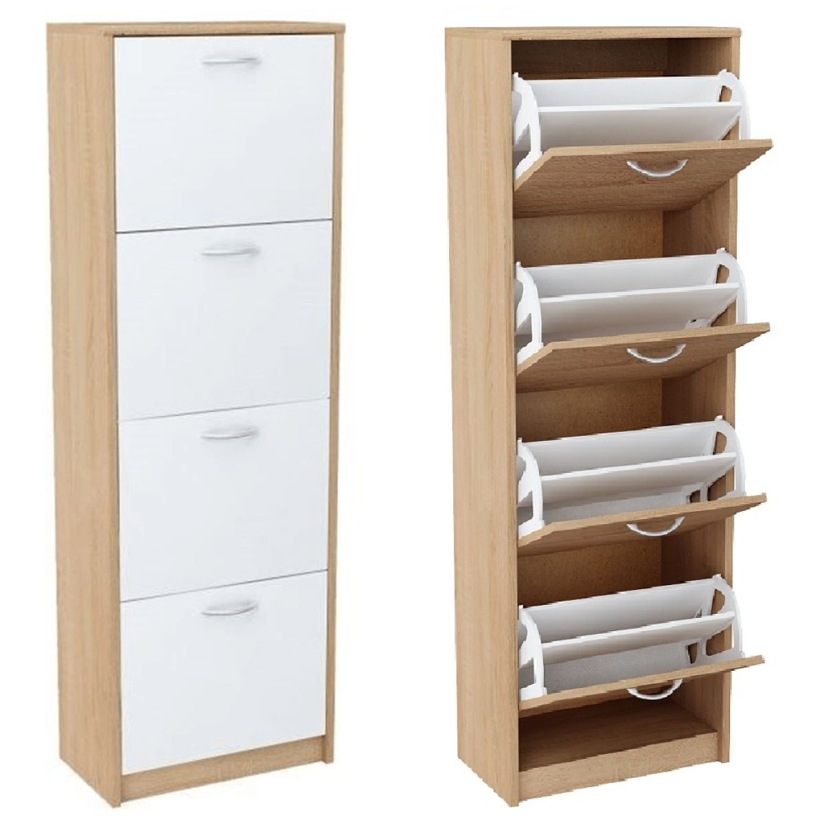 Pantofar cu 4 compartimente, stejar sonoma/ alb, VIVA