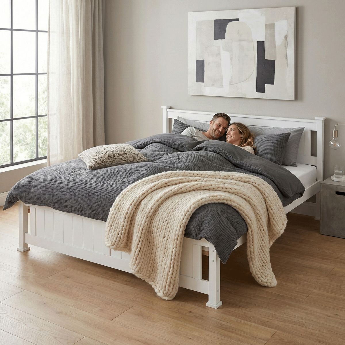 Pat 160x200 cm, lemn de pin alb, LUCAS