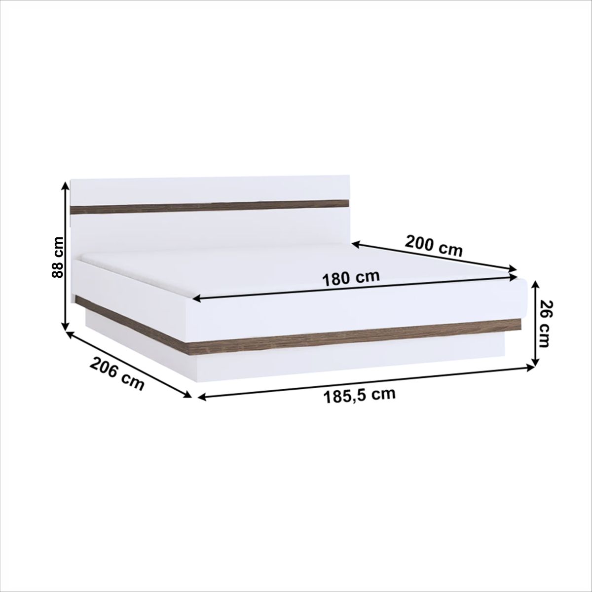 Pat 180x200 cm, alb lucios/ stejar sonoma închis, dormitor ELENA