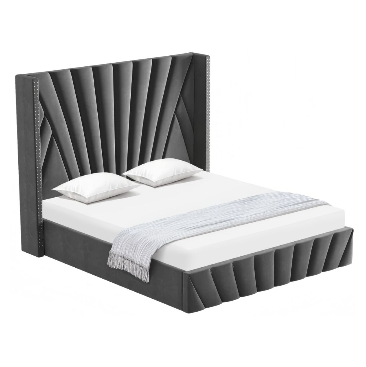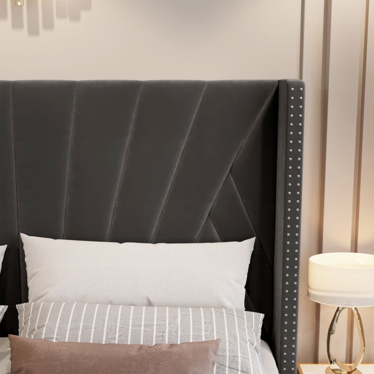 Pat cu grătar, 180x200, ţesătură gri închis Velvet, PENELOPE