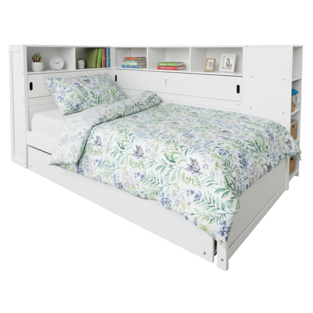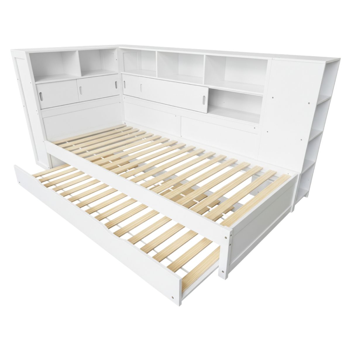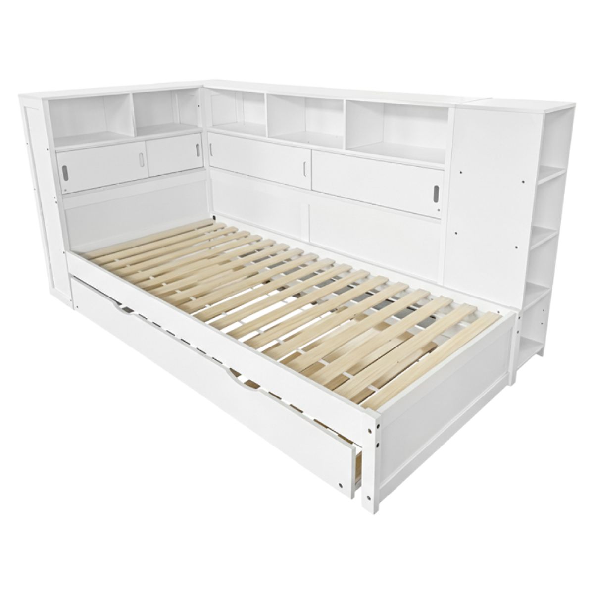 Pat cu rafturi şi pat suplimentar, alb, 90x200, LENDON