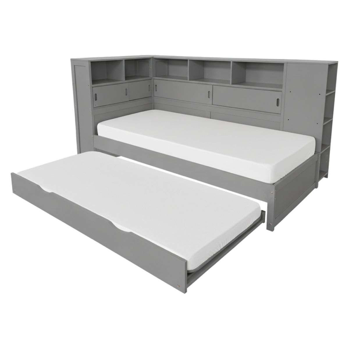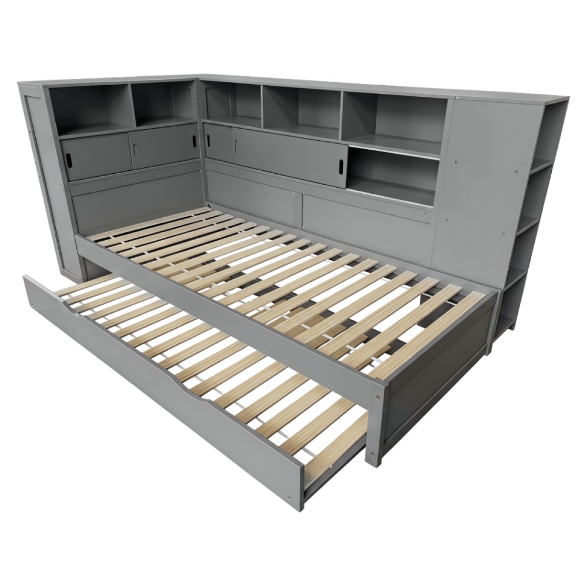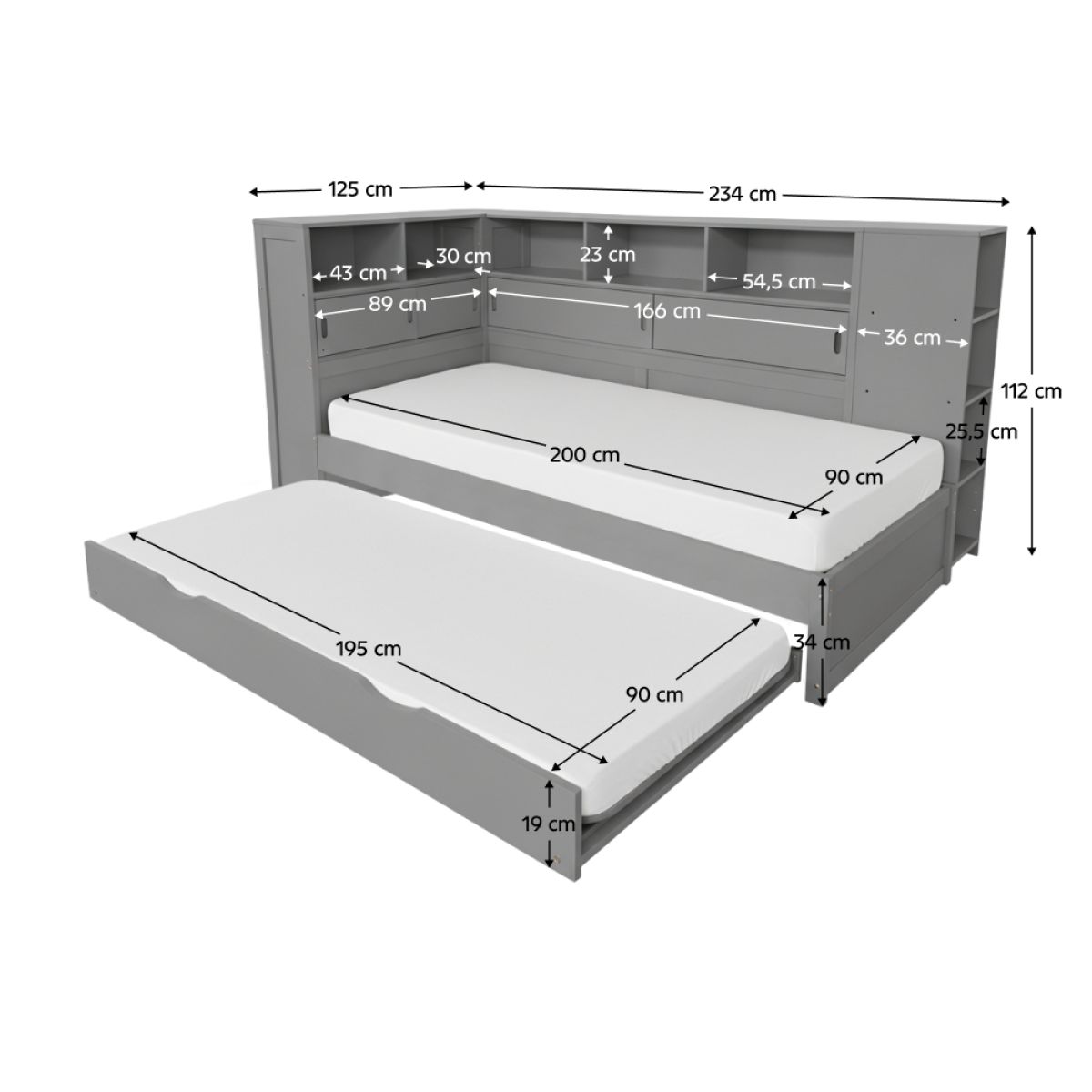 Pat cu rafturi şi pat suplimentar, gri, 90x200, LENDON