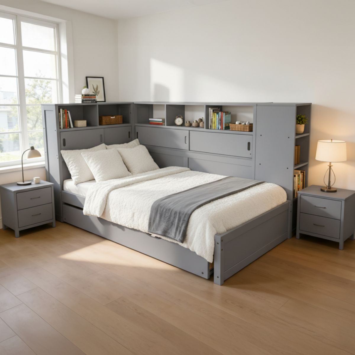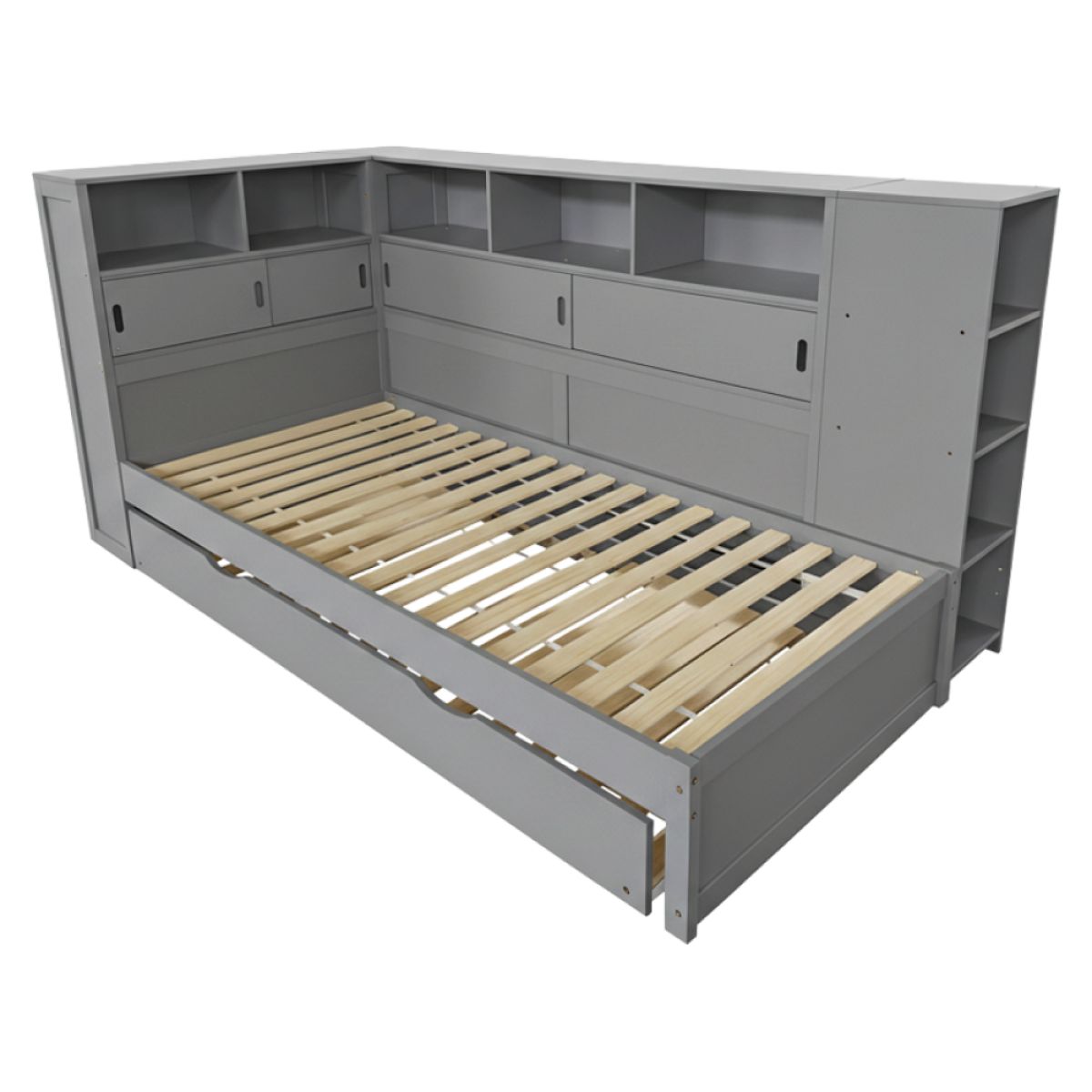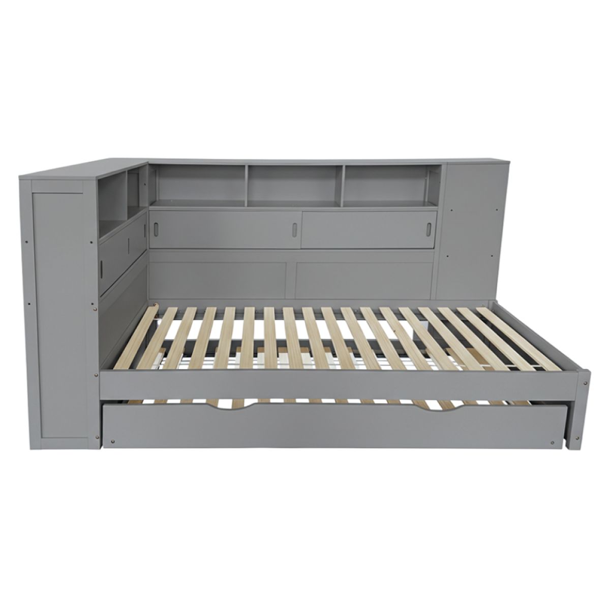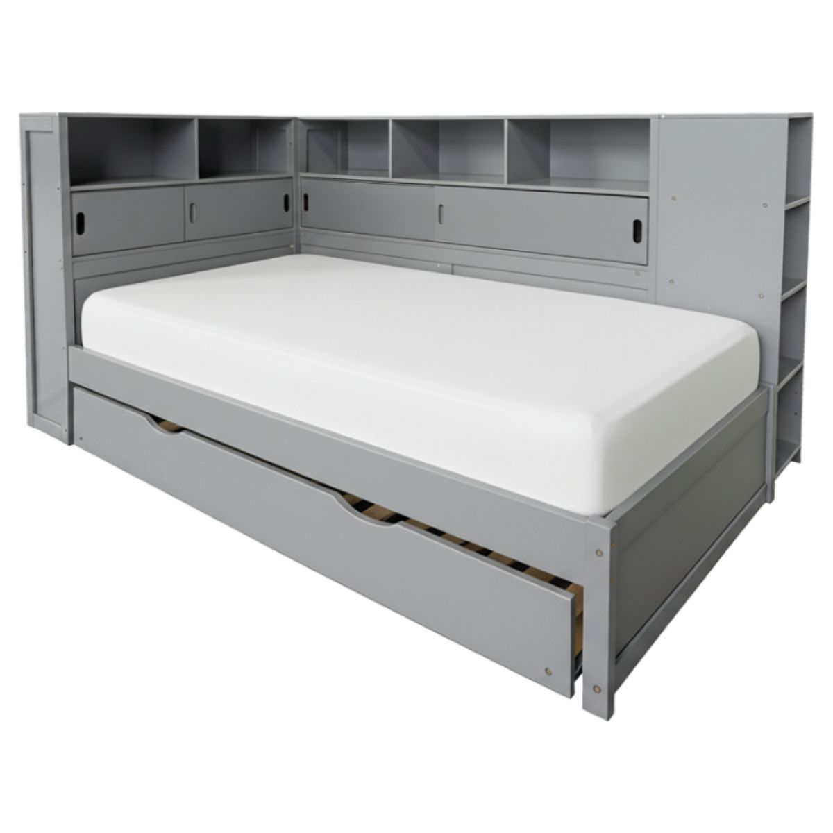 Pat cu rafturi şi pat suplimentar, gri, 90x200, LENDON