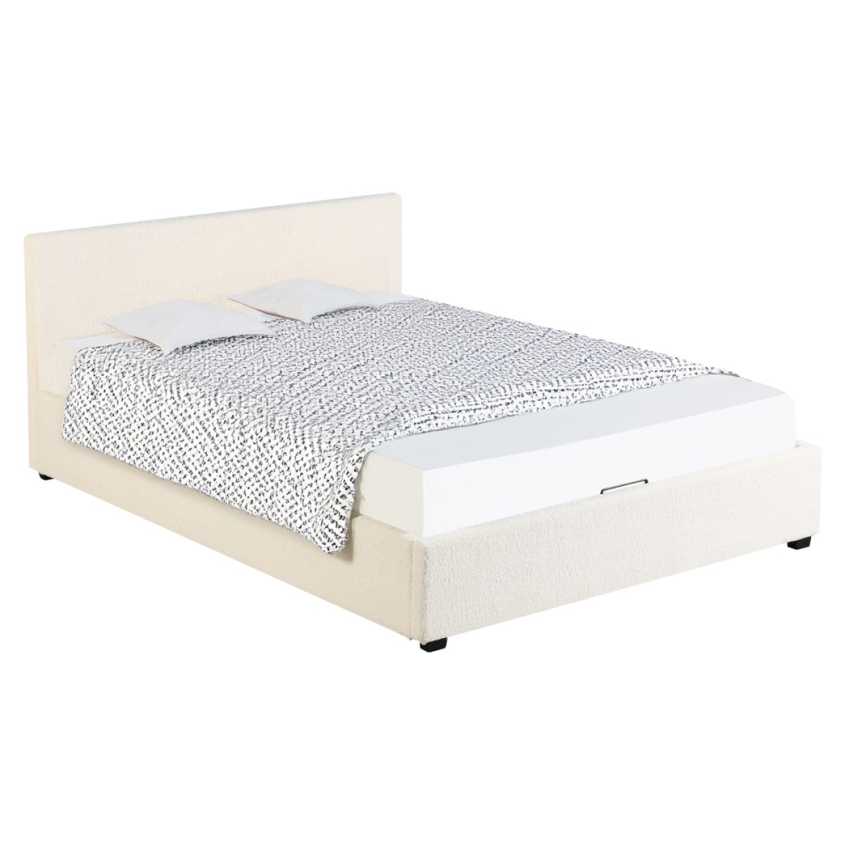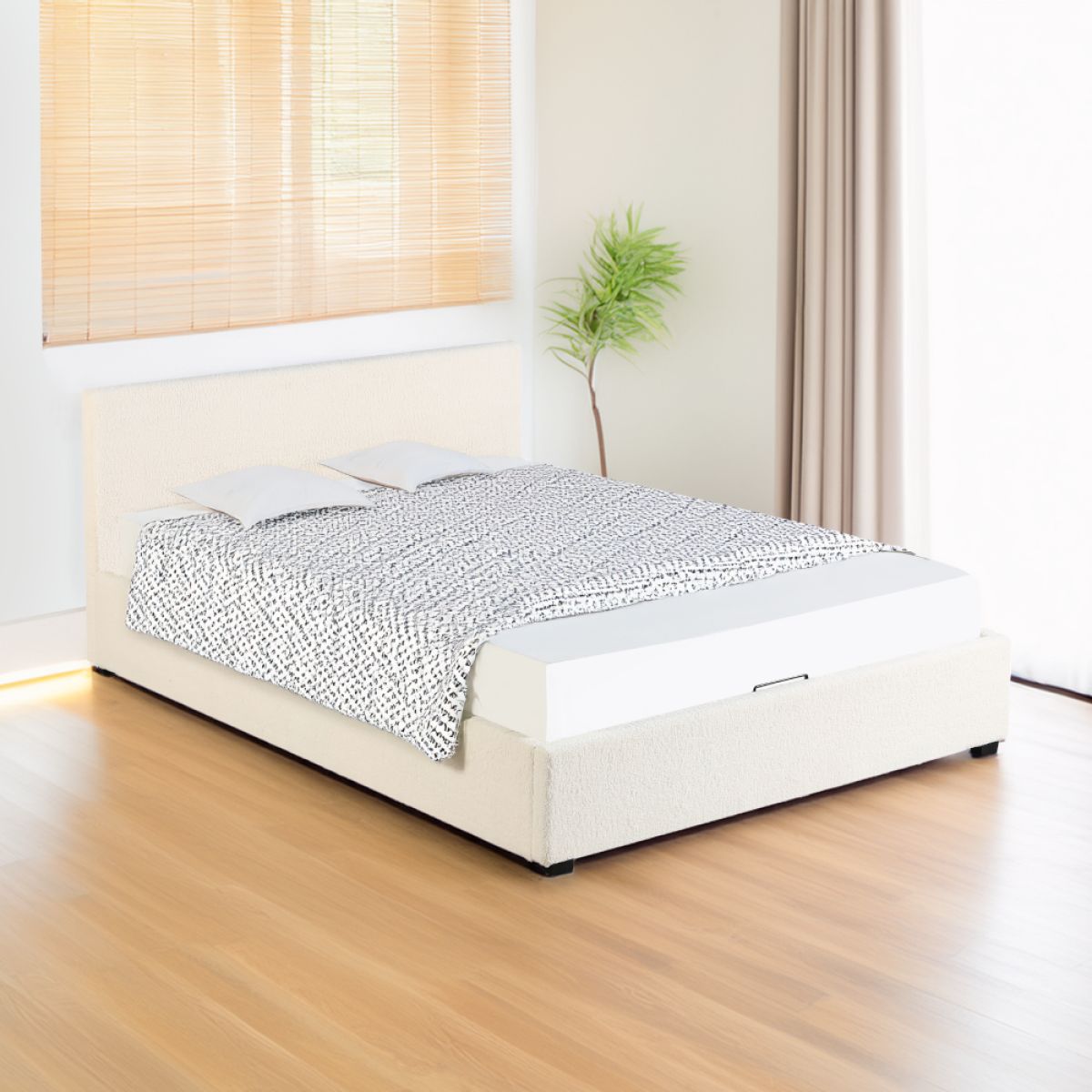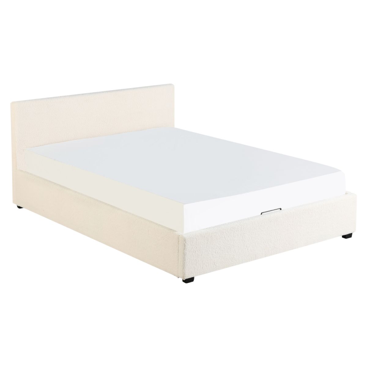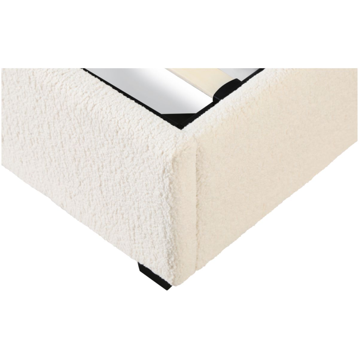 Material: ţesătură Bouclé/MDF melaminat Rezistenţa ţesăturii la frecare conform testului Martindale: 70 000 - 100 000 de cicluri de frecare Culoare: albă Dimensiuni (lxAxh): 199x212,5x86,5 cm Suprafaţă de dormit (lxL): 180x200 cm Înălţimea până la somieră: 28 cm Portanţa pe locul de dormit: 250 kg Cu frontală înaltă Înălţimea frontalei din faţă: 32 cm Înălţime frontală spate: 86,5 cm Pe picioare Materialul picioarelor: lemn Culoarea picioarelor: neagră Înălţimea picioarelor: 3,5 cm Livrat cu somieră cu lamele Spaţiu între lamele: 5 cm Pistoane pe gaz Livrat fără saltea Opţiunea de a cumpăra o saltea suplimentară din oferta noastră Înălţimea recomandată a saltelei: max. 20 cm Încastrarea saltelei: 3,5 cm Design modern Livrat dezasamblat