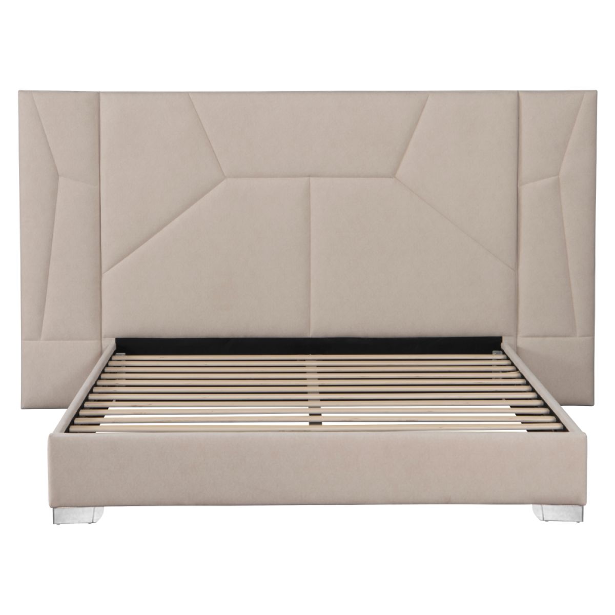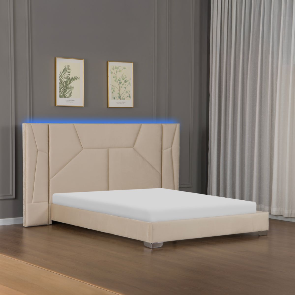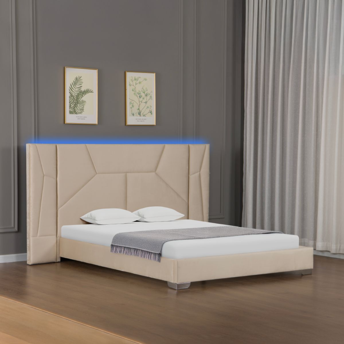 Pat cu somieră şi iluminare LED, 160x200, ţesătură Velvet bej, ALTESA