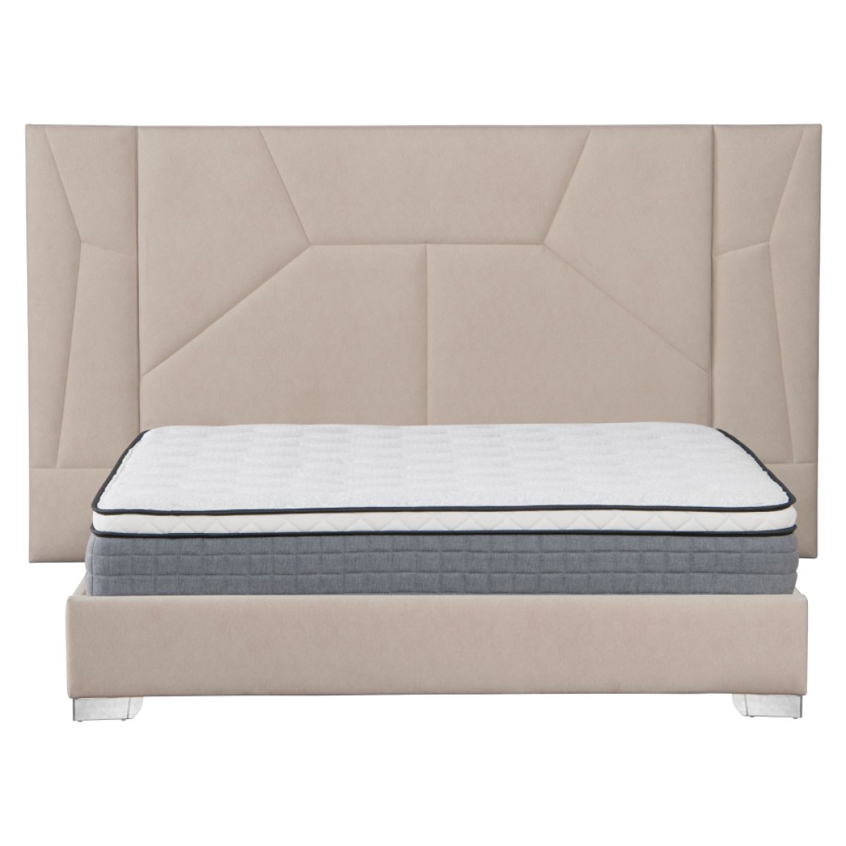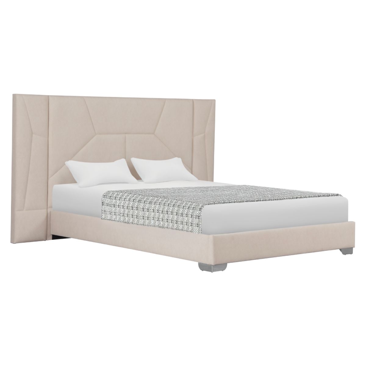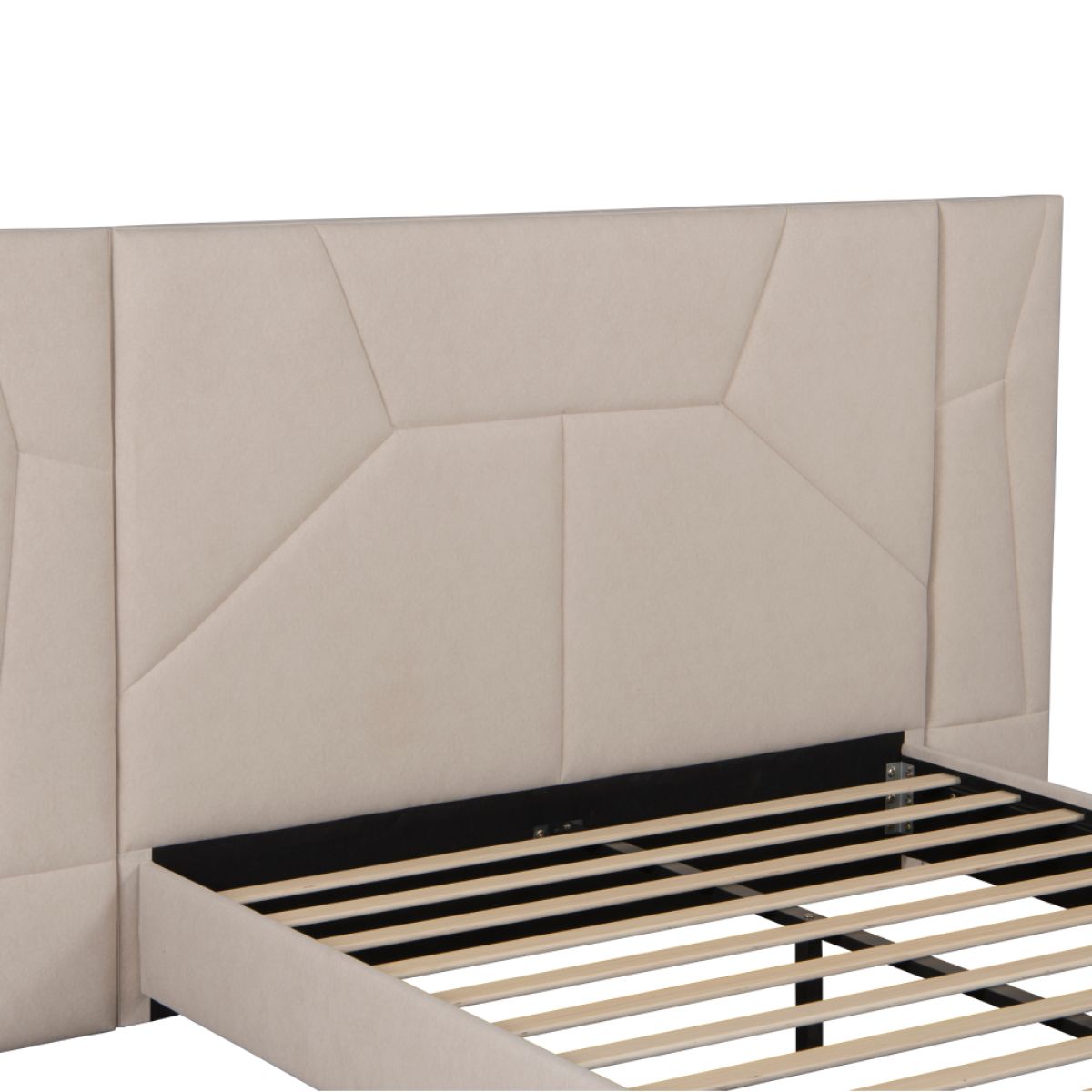Pat cu somieră şi iluminare LED, 160x200, ţesătură Velvet bej, ALTESA