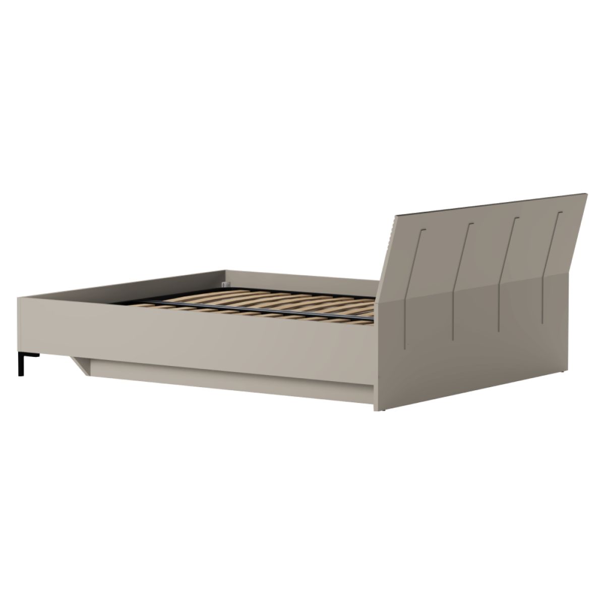 Material: DTD laminat Culoare: gri-maroniu Taupe Dimensiuni (lxAxh): 166,5x217,5x87,5 cm Suprafaţă de dormit (lxL): 160x200 cm Grosime material DTD: 1,6-1,8 cm Înălţimea până la somieră: 28,5 cm Portanţa pe locul de dormit: 100 kg Cu spaţiu de depozitare Înălţimea spaţiului de depozitare: 15 kg Livrat cu somieră cu lamele Spaţiu între lamele: 2,8 cm Pistoane pe gaz Livrat fără saltea Opţiunea de a cumpăra o saltea suplimentară din oferta noastră Înălţimea recomandată a saltelei: 18 cm Încastrarea saltelei: 7,8 cm Pe picioare Înălţime picioare: 12 cm Material picior: plastic Culoare picior: negru mat Design modern Livrat dezasamblat