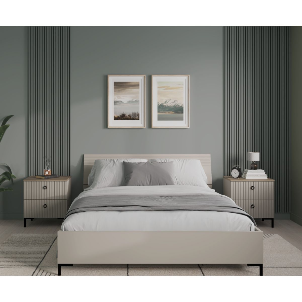 Pat matrimonial, 160x200, gri-maroniu Taupe, DOMCA