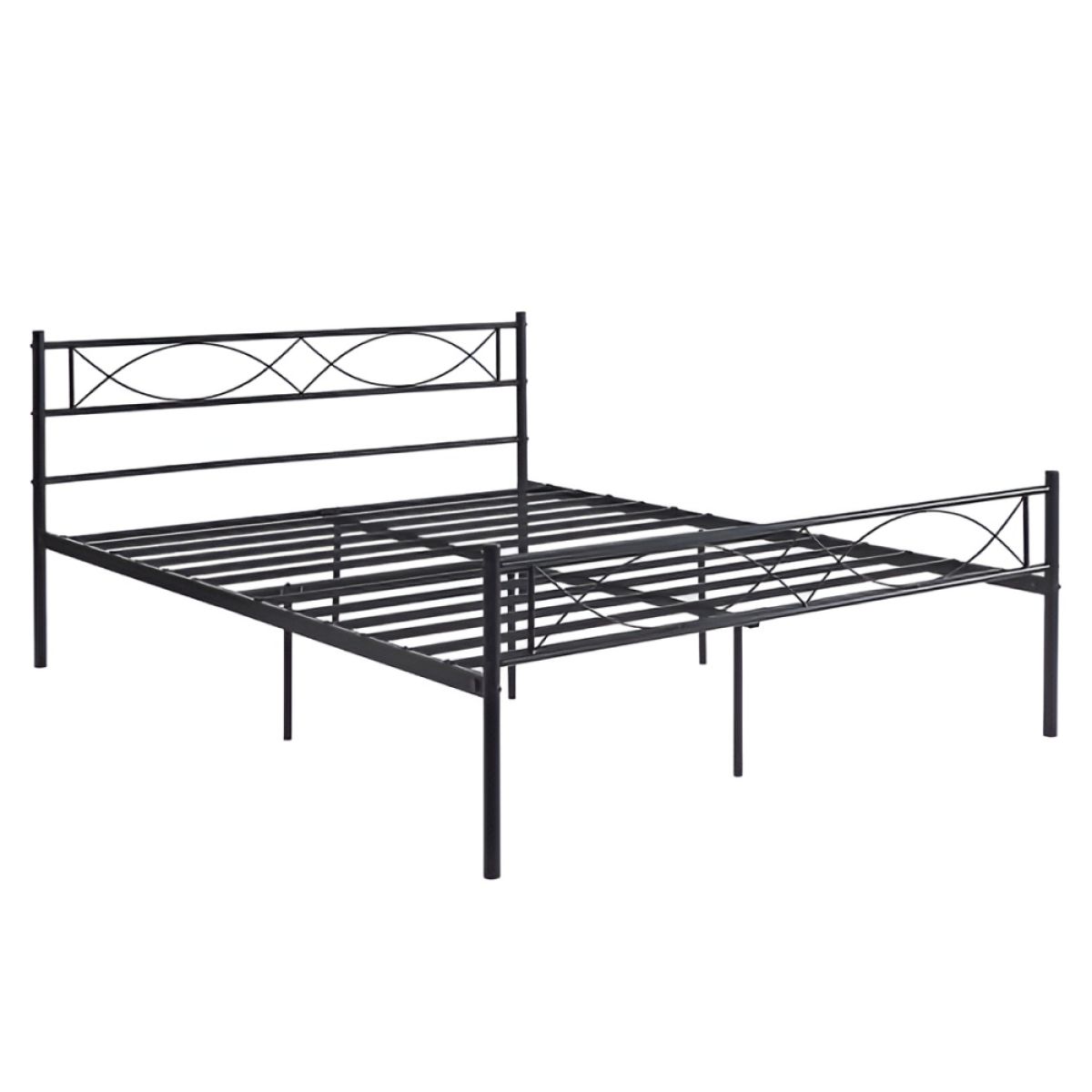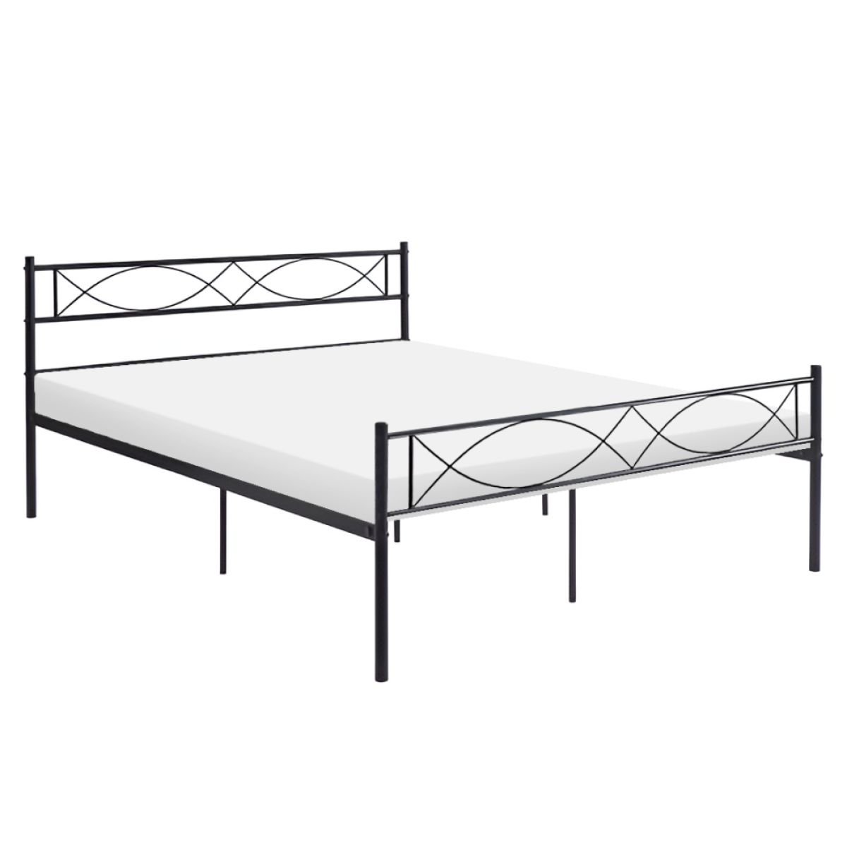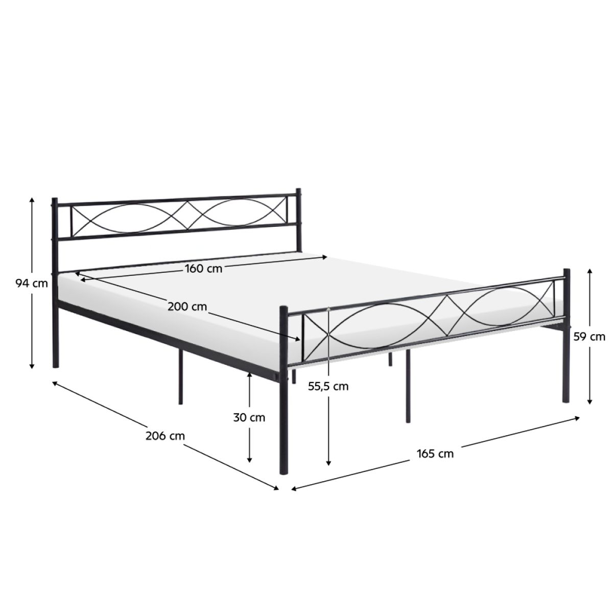 Material: metal Culoare: neagră Dimensiuni (lxAxh): 165x206x94 cm, suprafaţa pentru dormit (lxL): 160x200 cm Înălţimea până la somieră: 28,8 cm Înălţimea lateralei: 30,5 cm Portanţa pe locul de dormit: 150 kg Înălţimea frontalei faţă: 59 cm Înălţime frontală spate: 94 cm Pe picioare Înălţime picioare: 30 cm Livrat cu somieră metalică Spaţiu între lamelele metalice: 5 cm Livrat fără saltea Opţiunea de a cumpăra o saltea suplimentară din oferta noastră Înălţimea recomandată a saltelei: 20 cm Încastrarea saltelei: 1,2 cm Design elegant Elemente decorative Livrat dezasamblat