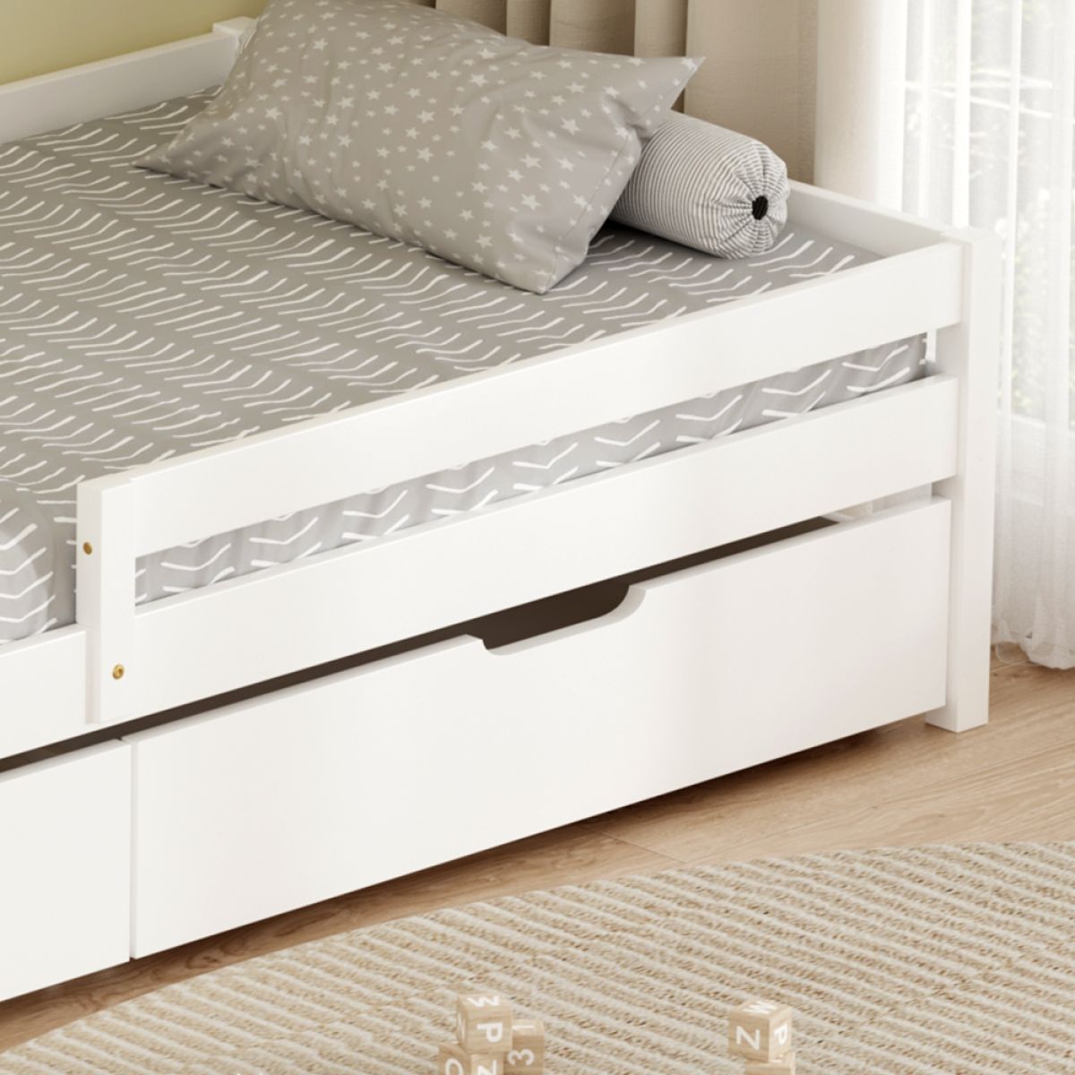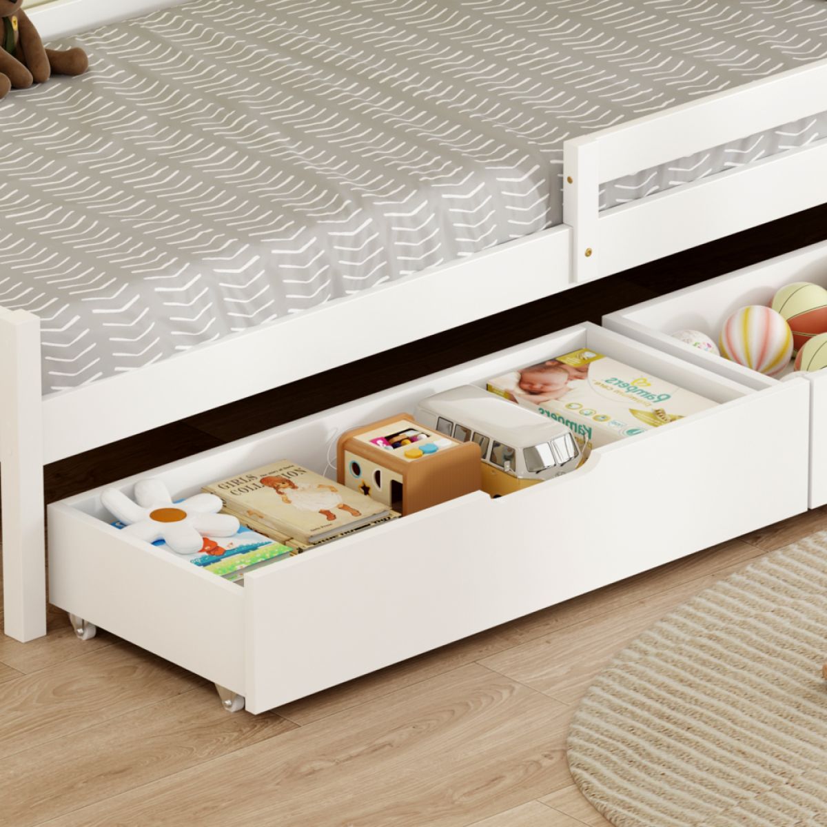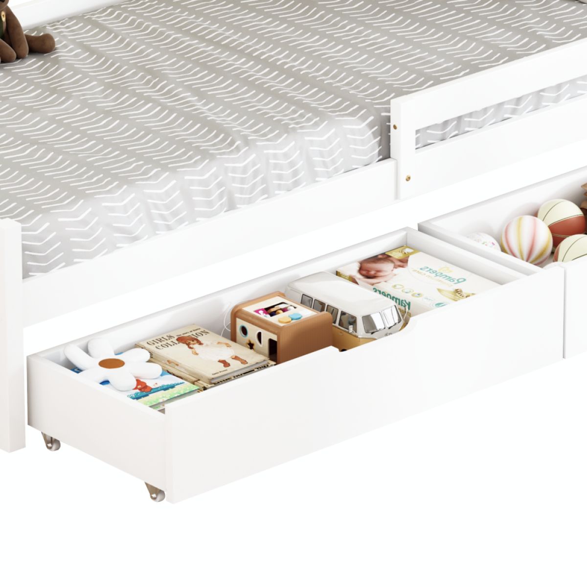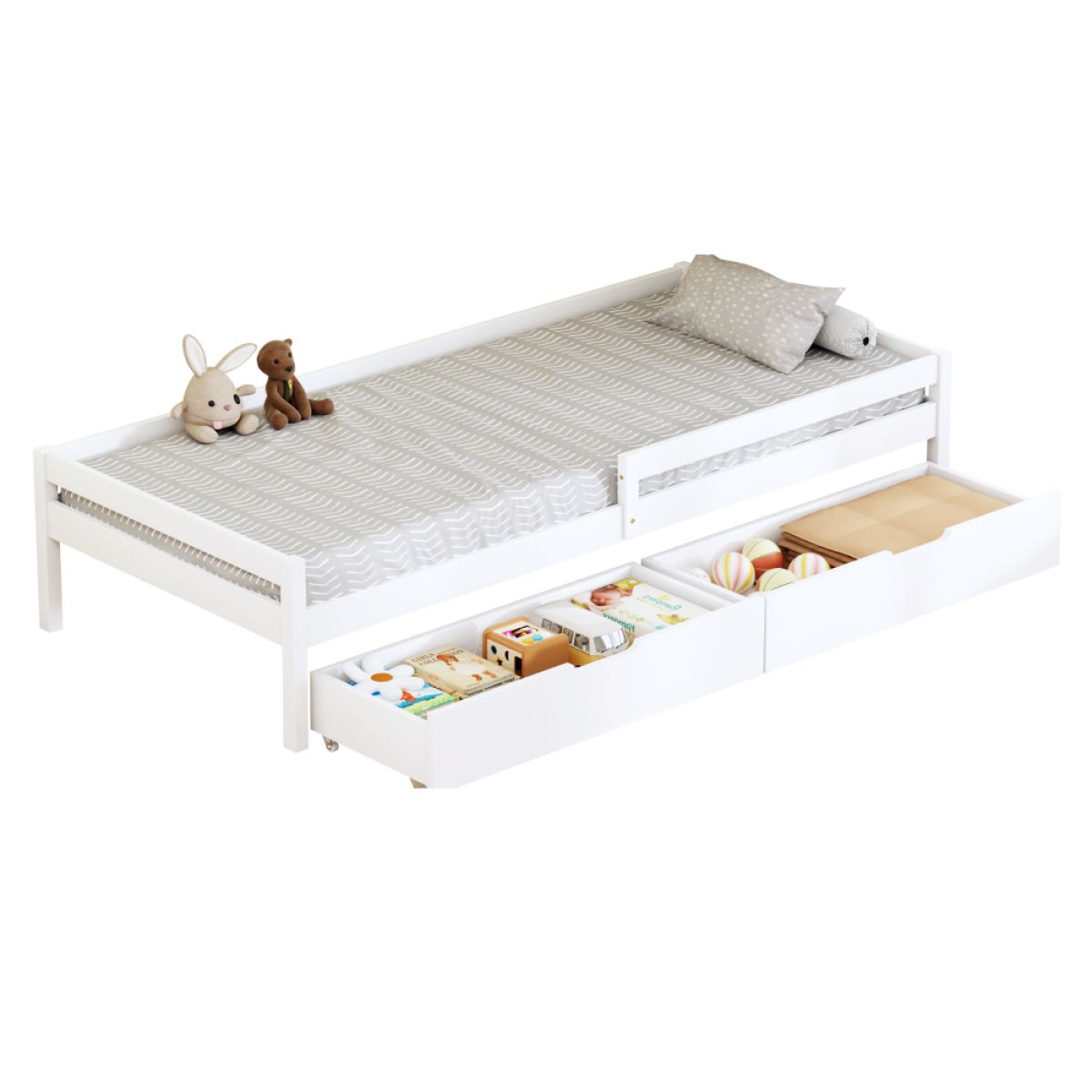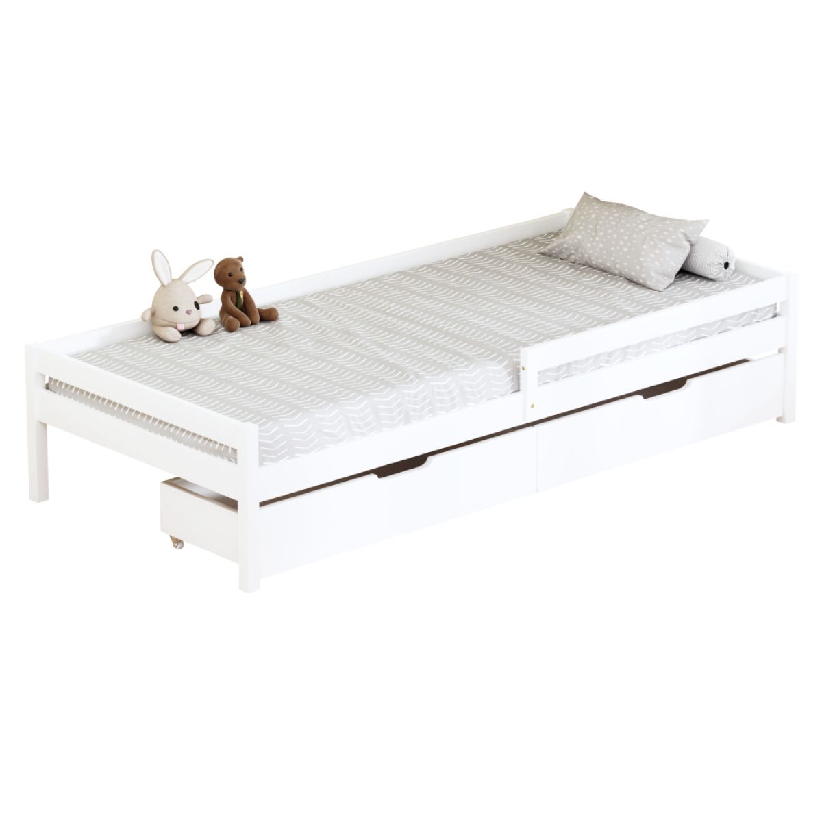 Pat pentru copii cu spaţiu de depozitare, 90x200, alb, MIX NEW