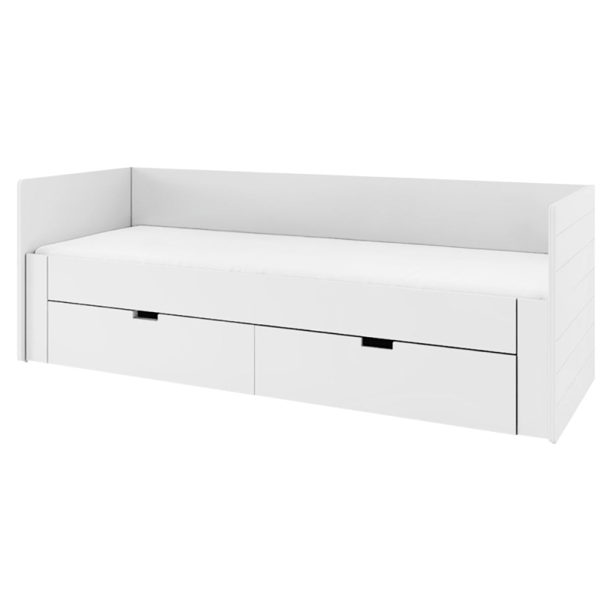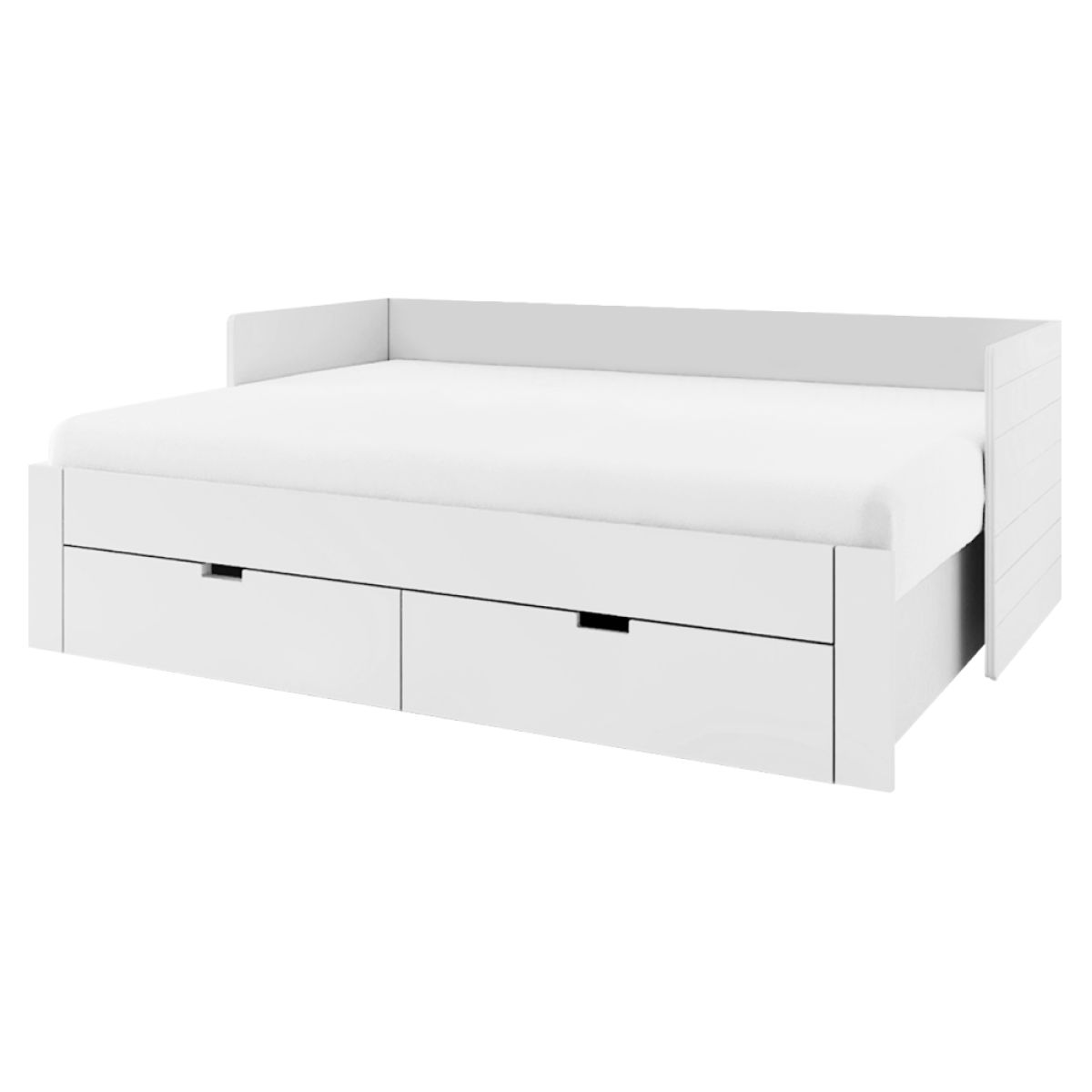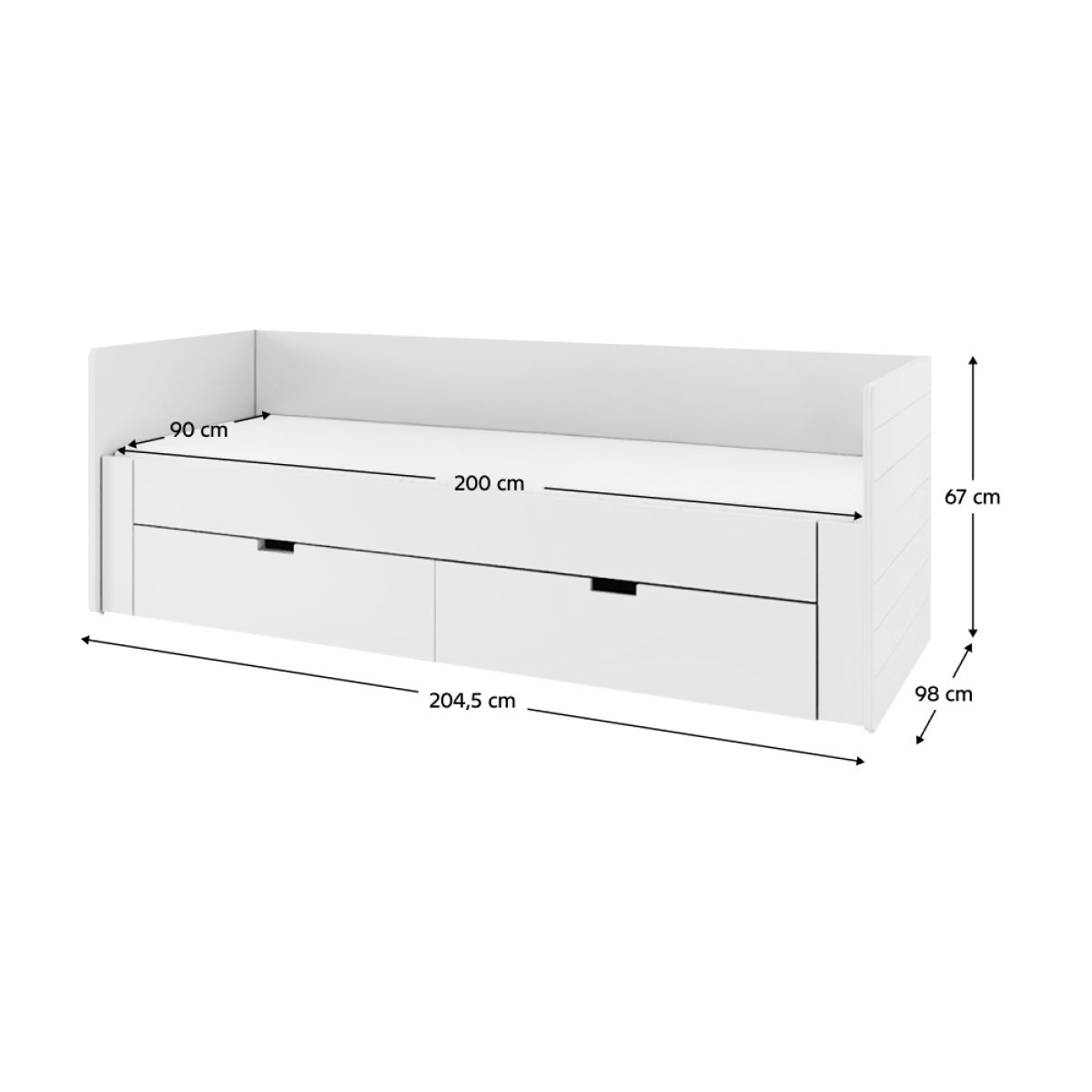 Material: lemn compozit/imitaţie MDF (PAL presat la suprafaţă) Culoare: alb Dimensiuni (Lxlxh): 98/184,7x204,5x67 cm Suprafaţa de dormit (Lxl): 90x200 cm Suprafaţa de dormit după desfăşurare (Lxl): 180x200 cm Grosimea materialului lemn compozit: 1,6-2,2 cm Grosimea materialului MDF: 2,2 cm Înălţimea frontalei din faţă de la podea: 39 cm Introducerea saltelei de la grătar până la laterală: 9 cm Spaţiu de depozitare Două sertare Dimensiunea sertarului interior (Lxlxh): 85x53,5x17 cm Portanţa sertarului: 5 kg Portanţă per persoană: 90 kg Livrat cu grătar Grătarul conţine lamele de pin Livrat fără saltea Recomandăm achiziţionarea unei saltele cu dimensiunea 90/180x200 Recomandăm achiziţionarea unei saltele suplimentare cu dimensiunea 90x200 De asemenea, saltea pliabilă potrivită 90/180x200 cm Înălţimea recomandată a saltelei: min. 12 cm Produs slovac de calitate Livrat dezasamblat