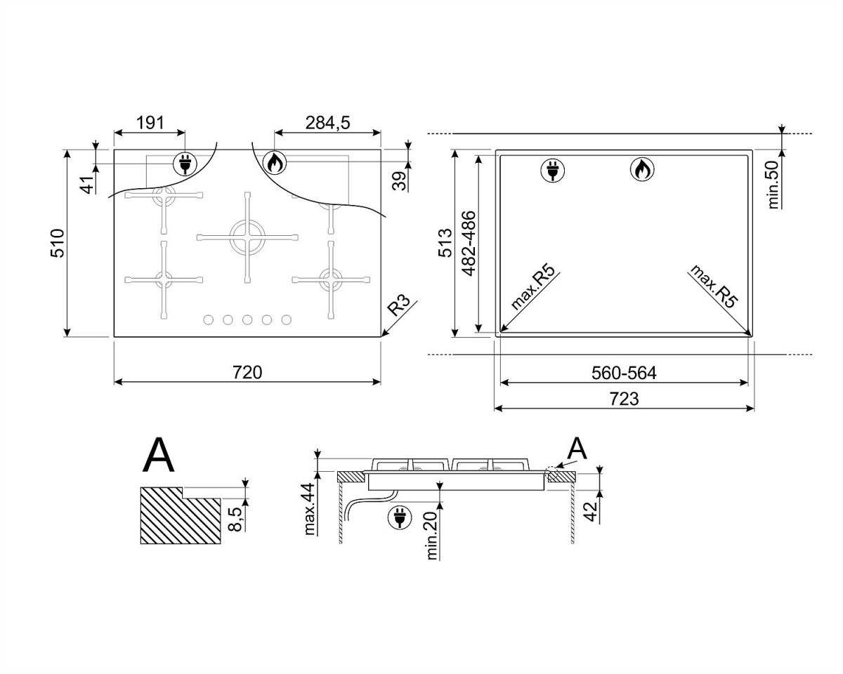 Decupare blat de lucru: 482-486x560-564 mm
