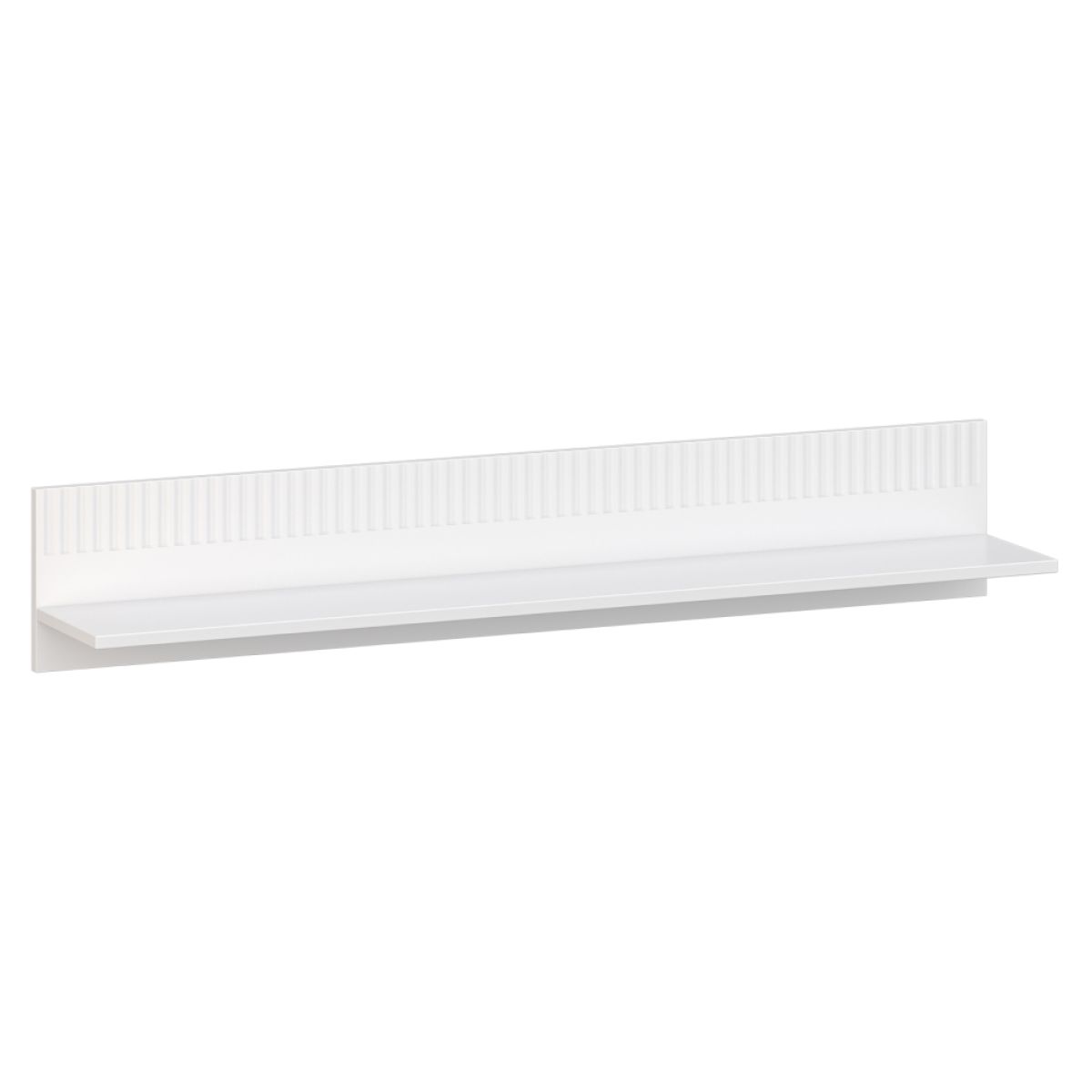Material: DTD laminat/MDF înfoliat/PVC Culoare: albă Dimensiuni (lxAxh): 127,4x21,6x22 cm Grosimea materialului: 1,6 cm De perete Portanţă poliţă: 8 kg Design modern Vă recomandăm să fixaţi mobilierul de perete Livrată dezasamblată