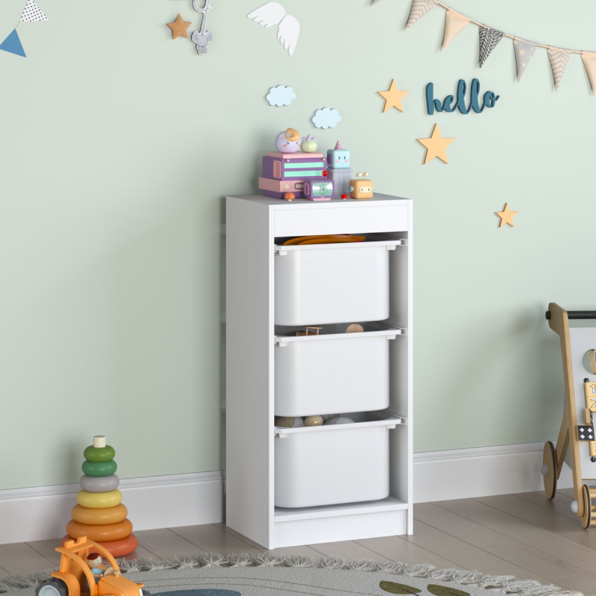 Raft cu cutii de depozitare, alb, DUVAN