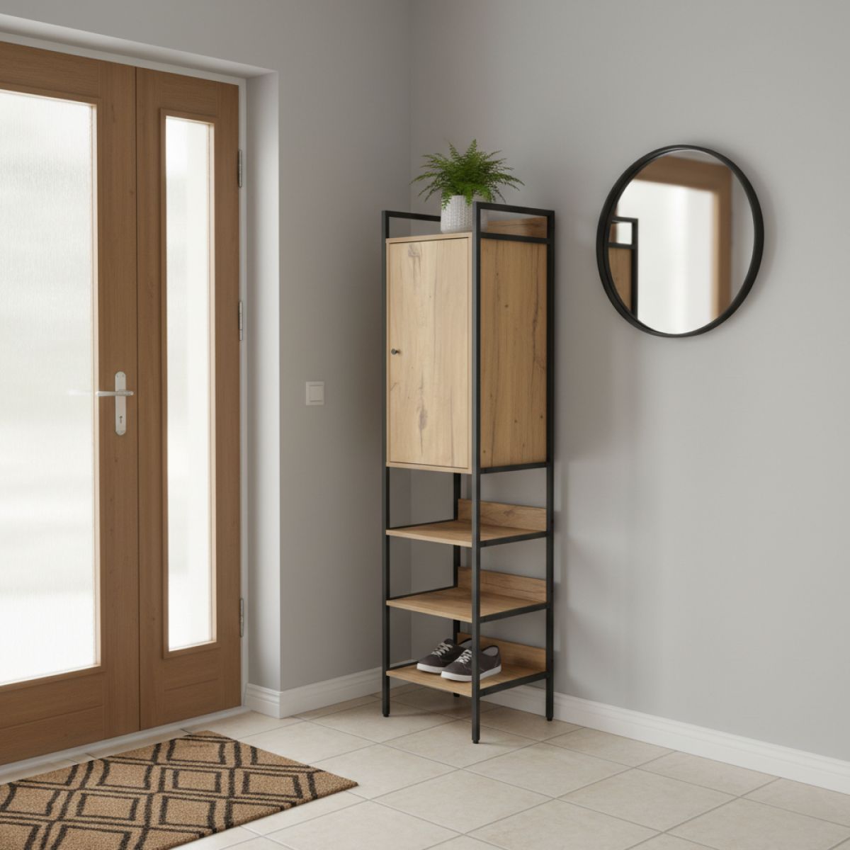 Raft cu dulap, stejar/negru, LORVA
