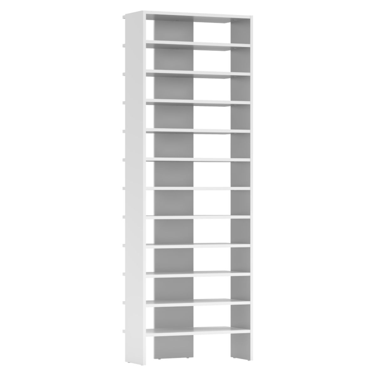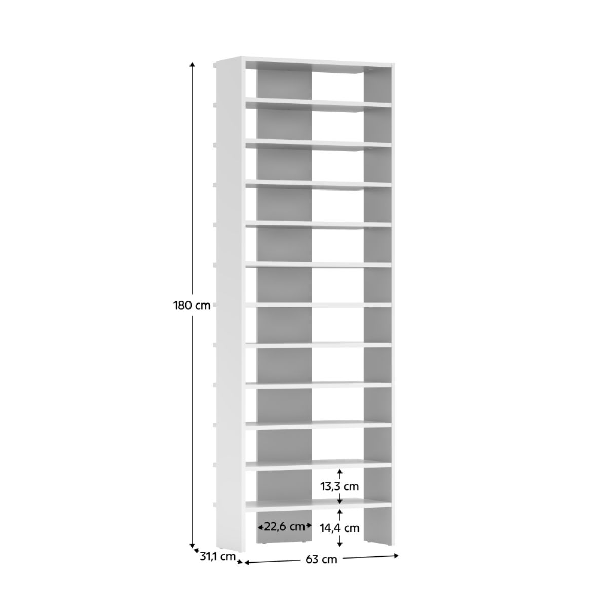 Material: DTD laminat Culoare: albă Dimensiuni (Lxlxh): 63x31,1x180 cm Grosimea materialului: 1,6 cm Spaţiu de depozitare deschis De poliţe Portanţă poliţă: 5 kg Înălţimea între poliţe: 13,3 cm Multifuncţional Practic Pe glisoare Produs slovac de calitate Vă recomandăm ataşarea pe perete Livrat dezasamblat