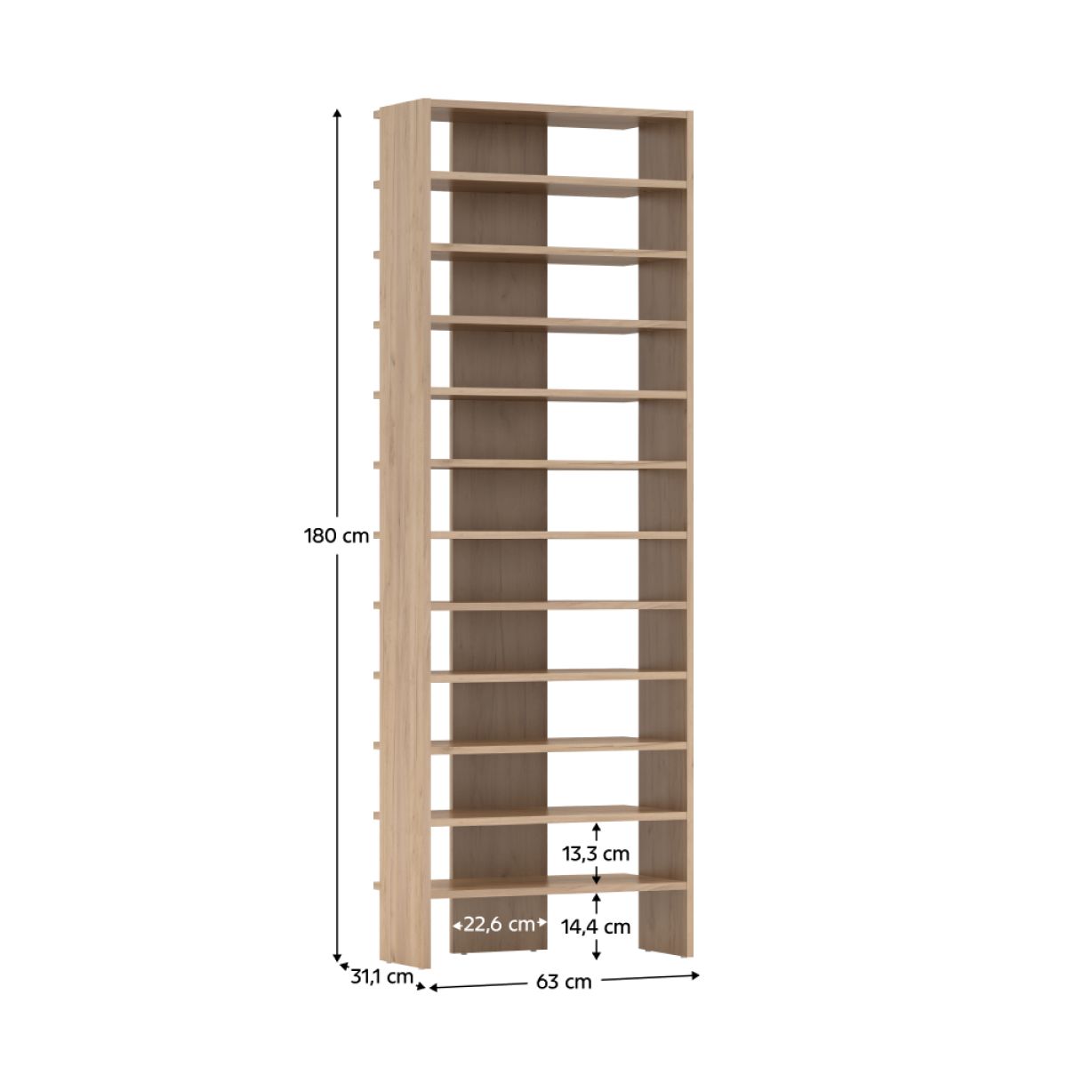 Material: DTD laminat Culoare: stejar artisan Dimensiuni (Lxlxh): 63x31,1x180 cm Grosimea materialului: 1,6 cm Spaţiu de depozitare deschis De poliţe Portanţă poliţă: 5 kg Înălţimea între poliţe: 13,3 cm Multifuncţional Practic Pe glisoare Produs slovac de calitate Vă recomandăm ataşarea pe perete Livrat dezasamblat