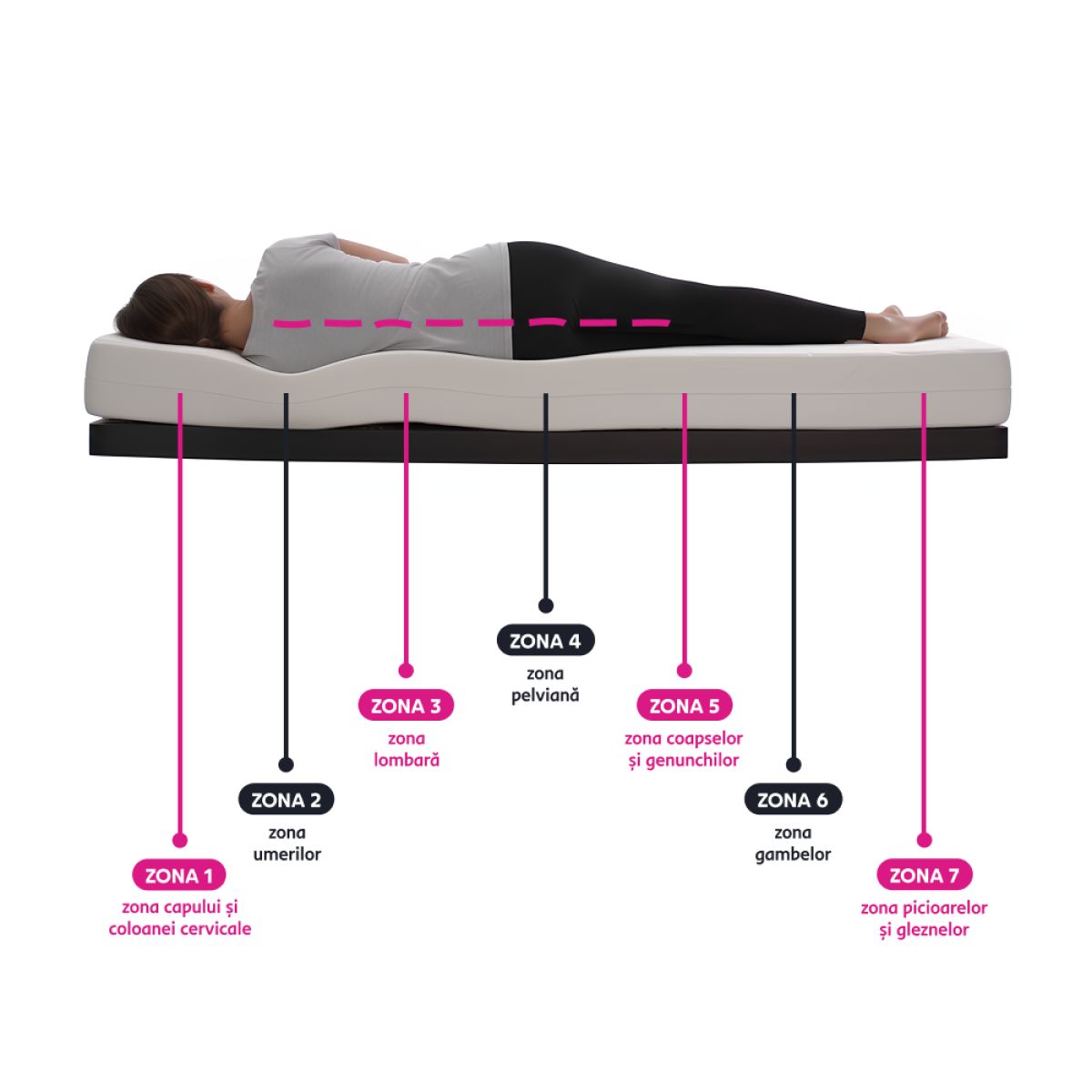Material: Spumă PUR/husă Dimensiuni (lxL): 140x200 cm Înălţimea saltelei: 14 cm Portanţă pe persoană: 100 kg Fermitatea saltelei: medium dură H3 cu două feţe Husă certificată OEKO-TEX STANDARD Husă matlasată Husă din microfibră OVATA Profilare în 7 zone Cu fermoar pe tot perimetrul Detaşabilă Se poare spăla la temperaturi de până la 40 °C Antibacteriană Antialergică Antiacariană Miezul perforat al saltelei asigură ventilaţie suficientă Recomandat pentru grătare cu spaţii de max. 6 cm