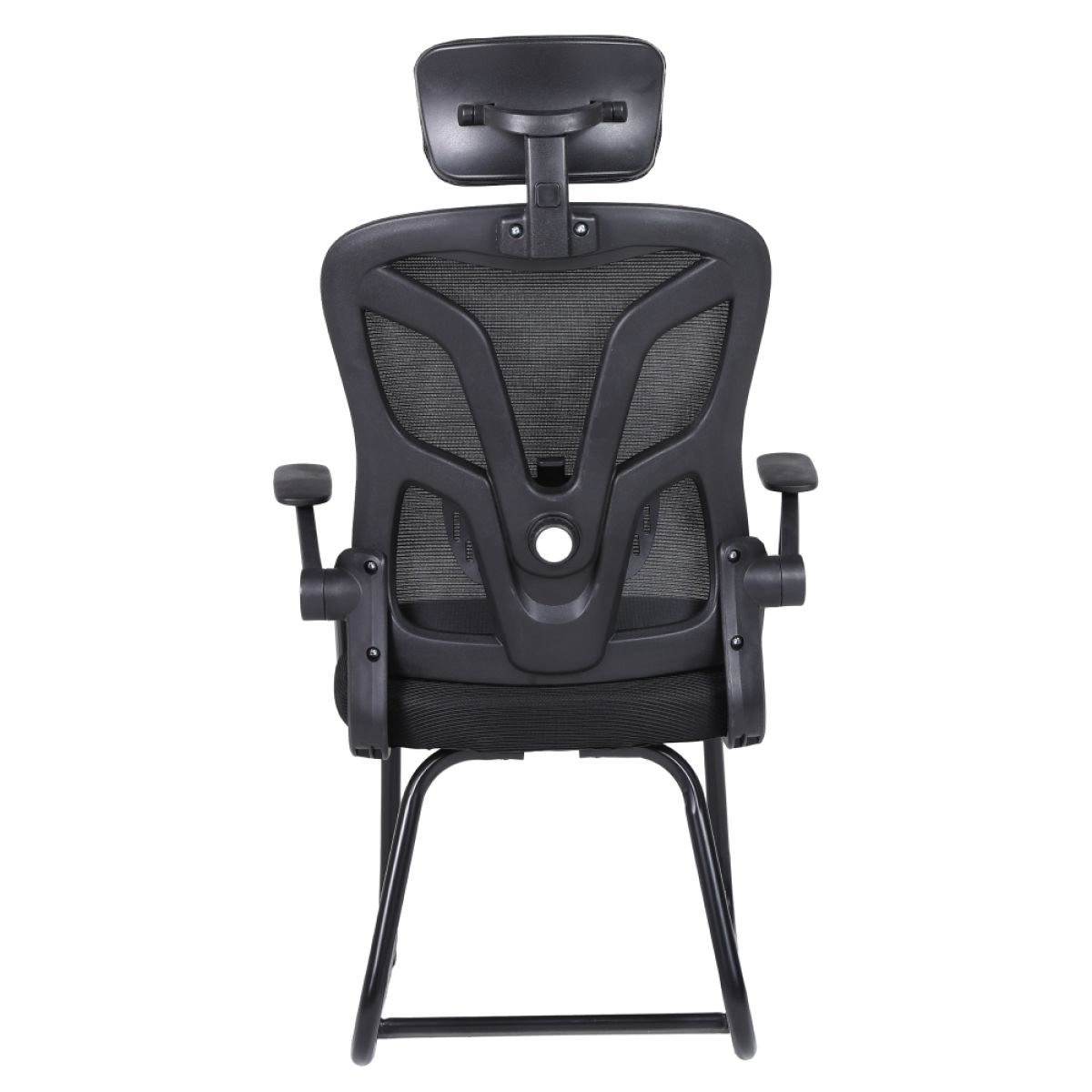 Material: plasă/plastic/fier Rezistenţa ţesăturii la frecare conform testului Martindale: 15 000 de cicluri de frecare Culoare: neagră Dimensiuni (lxAxh): 61x54x113 cm Înălţimea părţii de şezut: 45 cm Adâncimea părţii de şezut: 44 cm Lăţimea părţii de şezut: 47 cm Lăţime spătar: 47 cm Înălţime spătar: 70 cm Înălţime de la sol la cotieră: 63 cm Portanţa: 130 kg Cu ??cotiere Cotiere rabatabile Tetieră reglabilă Livrat dezasamblat