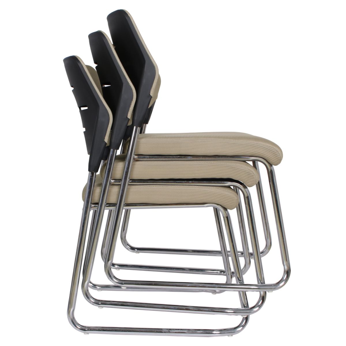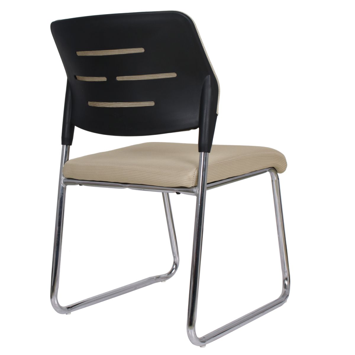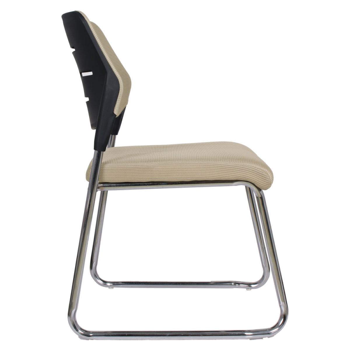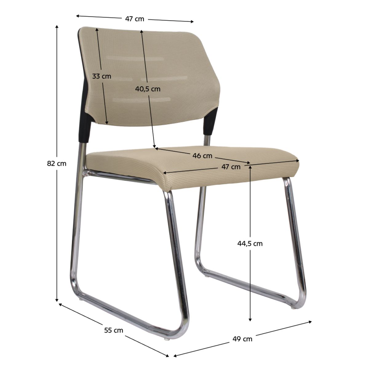 Material tapiţerie: plasă/plastic/metal Rezistenţa ţesăturii conform testului Martindale: 90 000 de cicluri de frecare Culoare: maro deschis/neagră Dimensiuni (lxAxh): 47x49x82 cm Înălţimea părţii de şezut: 44,5 cm Adâncimea părţii de şezut: 46 cm Lăţimea părţii de şezut: 45 cm Înălţime spătar: 31,5 cm Lăţime spătar: 47 cm Portanţă: 70 kg Bază cromată Stivuibil Posibilitate de suprapunere max. 4 bucăţi De conferinţe Livrat dezasamblat