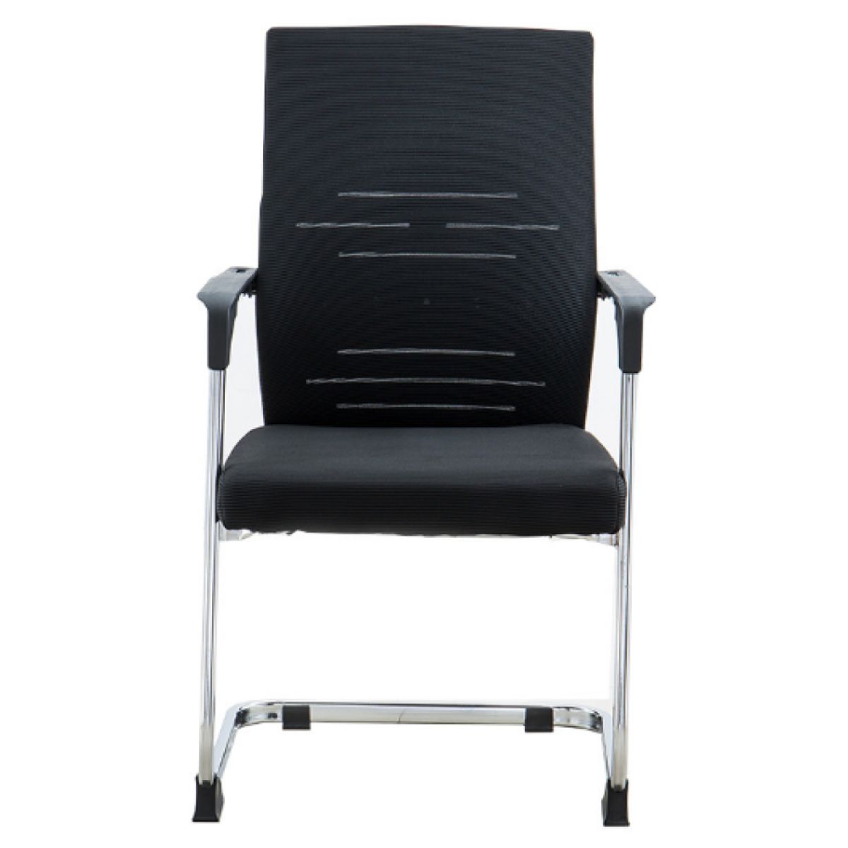 Material: plasă/plastic/metal Rezistenţa ţesăturii la frecare conform testului Martindale: 90 000 de cicluri de frecare Culoare: neagră/crom Dimensiuni (lxAxh): 58x57x98 cm Înălţimea părţii de şezut: 47 cm Adâncimea părţii de şezut: 50 cm Lăţimea părţii de şezut: 48 cm Înălţime spătar: 55 cm Lăţime spătar: 46 cm Portanţă: 110 kg Baza cromată De conferinţe Cu cotiere Livrat dezasamblat