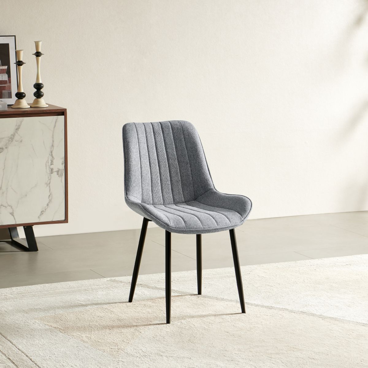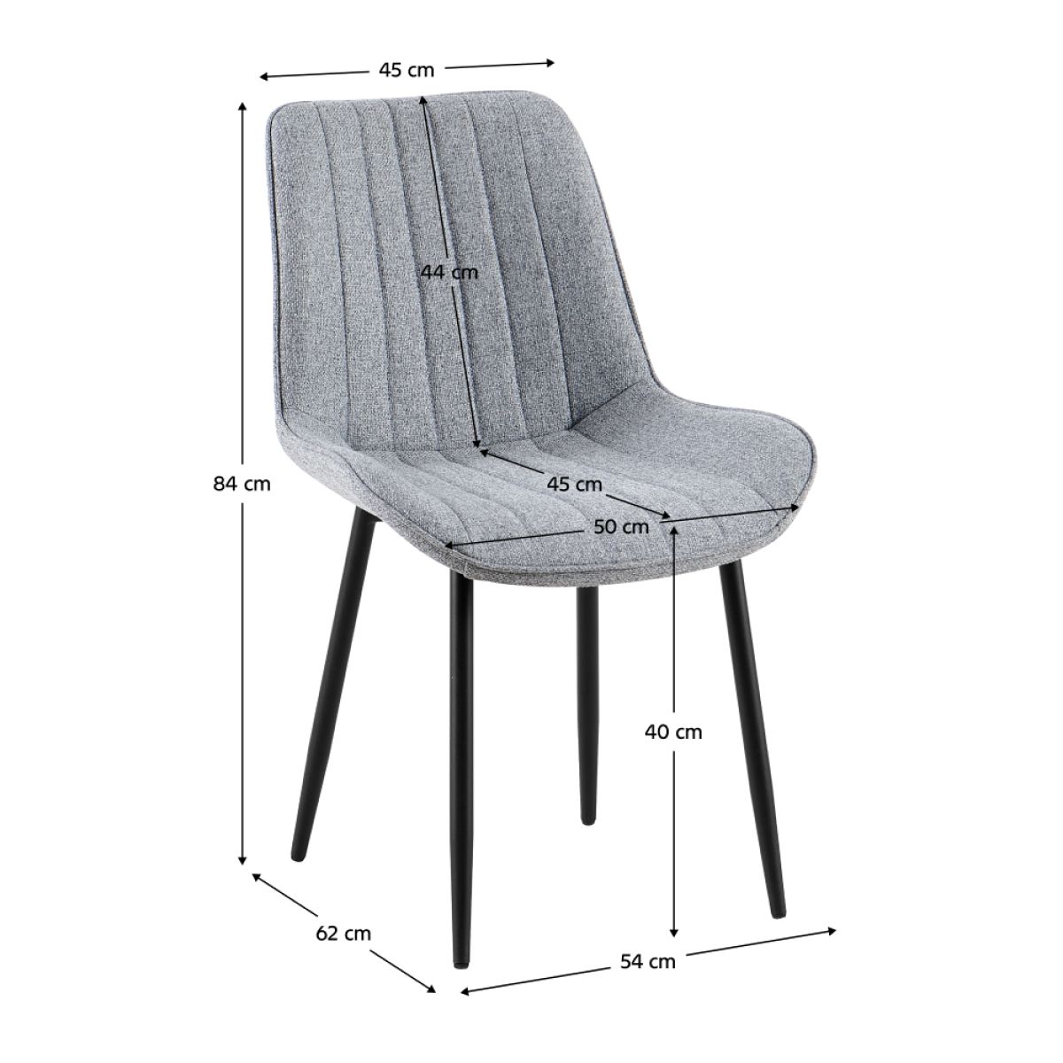 Material: ţesătură Lumos 08/metal Rezistenţa ţesăturii la frecare conform testului Martindale: 80 000 de cicluri de frecare Culoare: gri deschis/neagră Dimensiuni (lxAxh): 54x62x84 cm Înălţimea părţii de şezut: 40 cm Adâncimea părţii de şezut: 45 cm Lăţimea părţii de şezut: 50 cm Lăţime spătar: 45 cm Înălţime spătar: 44 cm Portanţă: 100 kg Greutate: 4,5 kg De sufragerie Cusături decorative Design modern Livrat dezasamblat