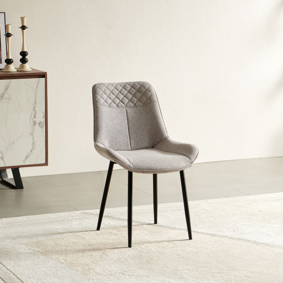 Material: ţesătură Lumos 31/metal Rezistenţa ţesăturii la frecare conform testului Martindale: 80.000 de cicluri de frecare Culoare: bej/neagră Dimensiuni (lxAxh): 54x62x84 cm Înălţimea părţii de şezut: 40 cm Adâncimea părţii de şezut: 45 cm Lăţimea părţii de şezut: 50 cm Lăţime spătar: 45 cm Înălţime spătar: 44 cm Portanţă: 100 kg Greutate: 4,5 kg De sufragerie Cusături decorative Design modern Livrat dezasamblat
