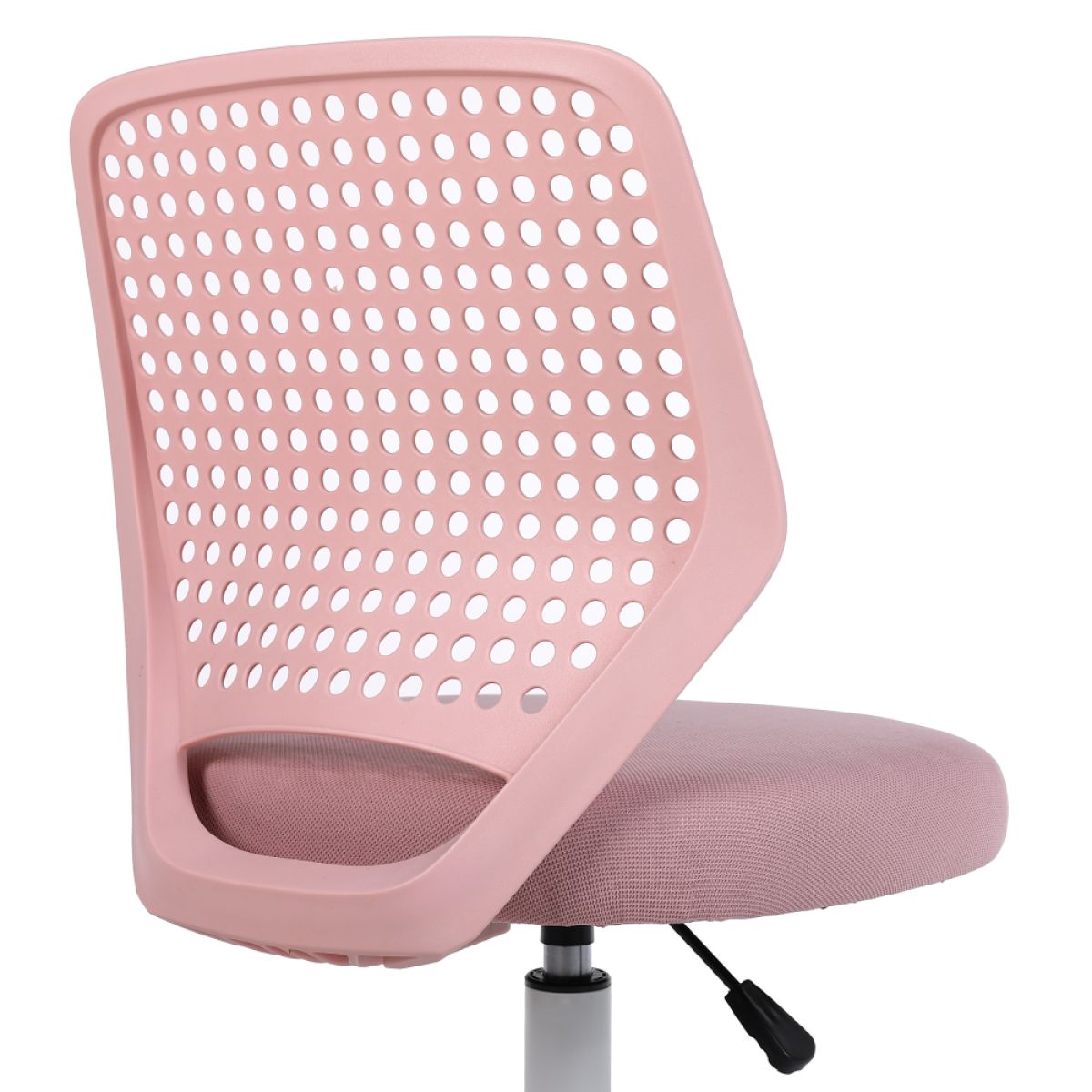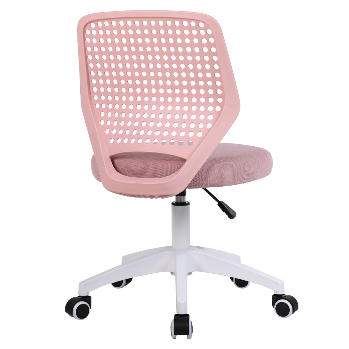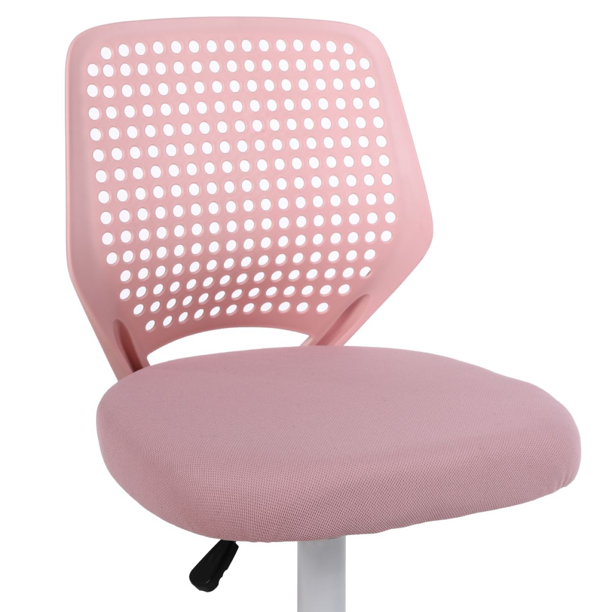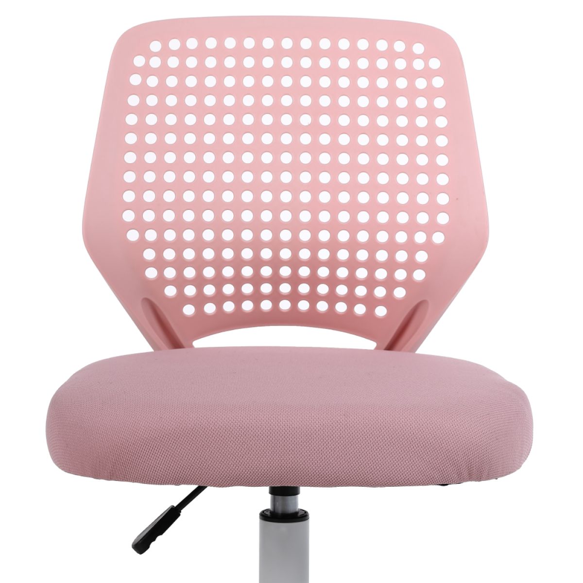 Material: plasă /plastic Rezistenţa ţesăturii la frecare conform testului Martindale: 15 000 de cicluri de frecare Culoare: roz/albă Dimensiuni (lxAxh): Înălţimea părţii de şezut: 46x50x79/89 cm 41-51 cm Lăţimea părţii de şezut: 46 cm Adâncimea părţii de şezut: 43 cm Înălţime spătar: 43 cm Lăţime spătar: 35 cm Portanţă: 100 cm Pivotant Roţi universale pivotante Potrivite pentru pardoseli dure şi moi Bază cu cinci braţe Livrat dezasamblat