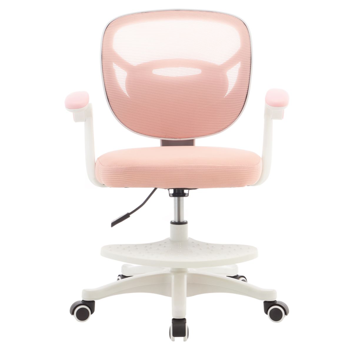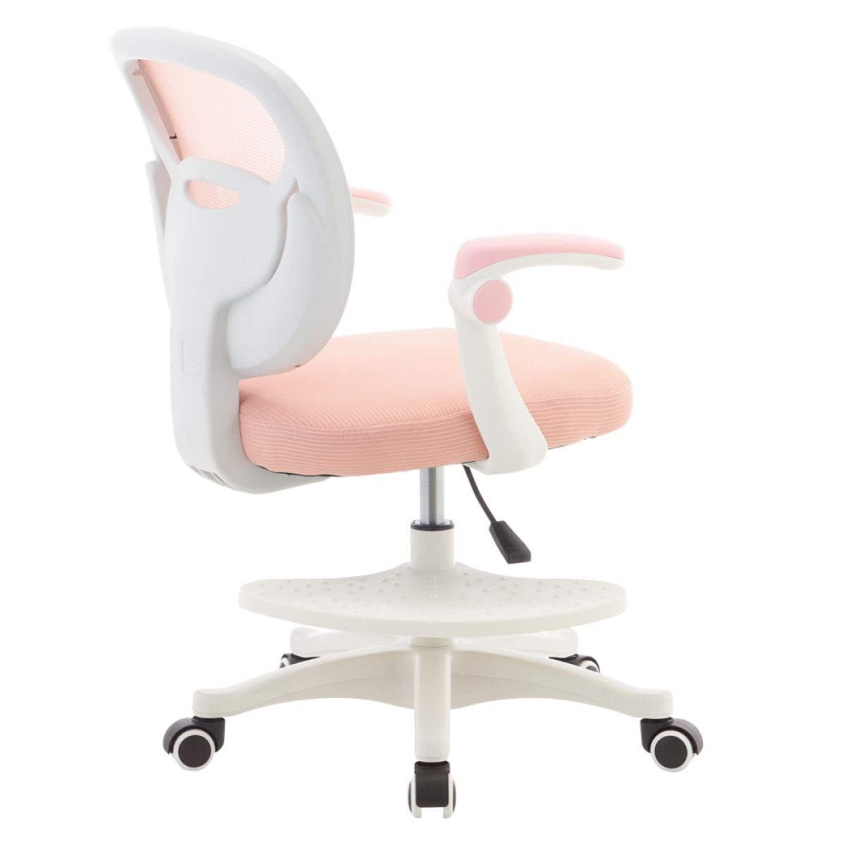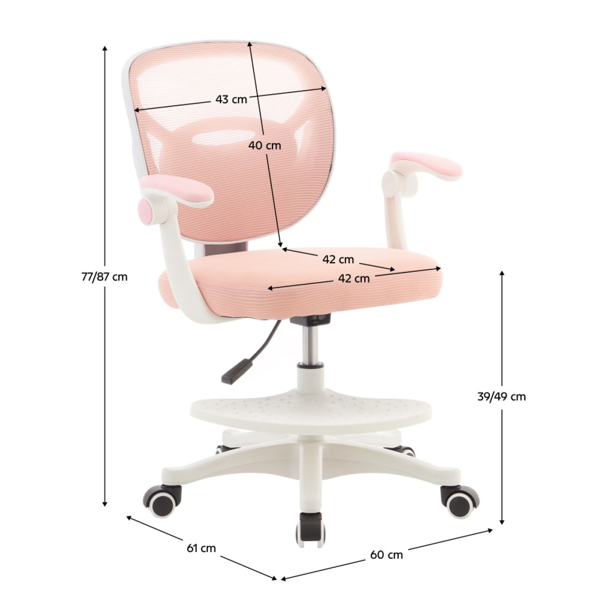 Material: plasă/plastic Rezistenţa plasei la frecare conform testului Martindale: 90 000 de cicluri de frecare Culoare: roz/albă Dimensiuni (lxAxh): 60x61x77-87 cm Înălţimea părţii de şezut: 39-49 cm, Adâncimea părţii de şezut: 42 cm Lăţimea părţii de şezut: 42 cm Lăţime spătar: 43 cm Înălţime spătar: 40 cm Portanţă: 90 kg Scaun pivotant Înălţime reglabilă a scaunului Cotiere cu funcţie de rabatare Rotiţe universale Rotiţe potrivite atât pentru pardoselile dure cât şi pentru cele moi Suportul pentru picioare, cu înălţime reglabilă Suportul pentru picioare detaşabil Livrat dezasamblat