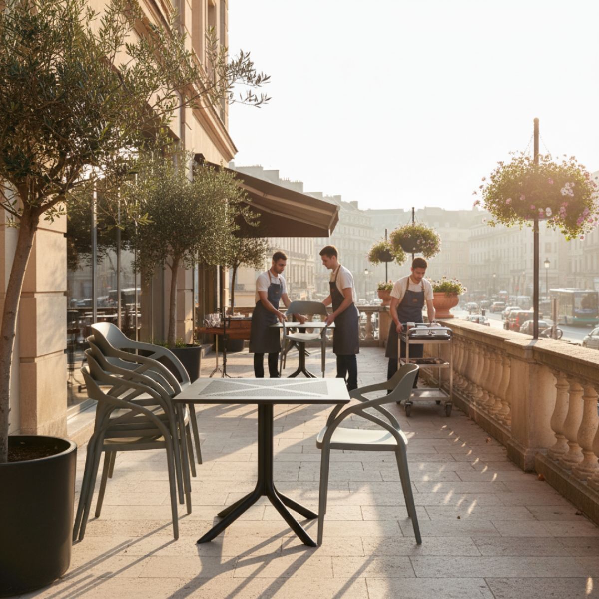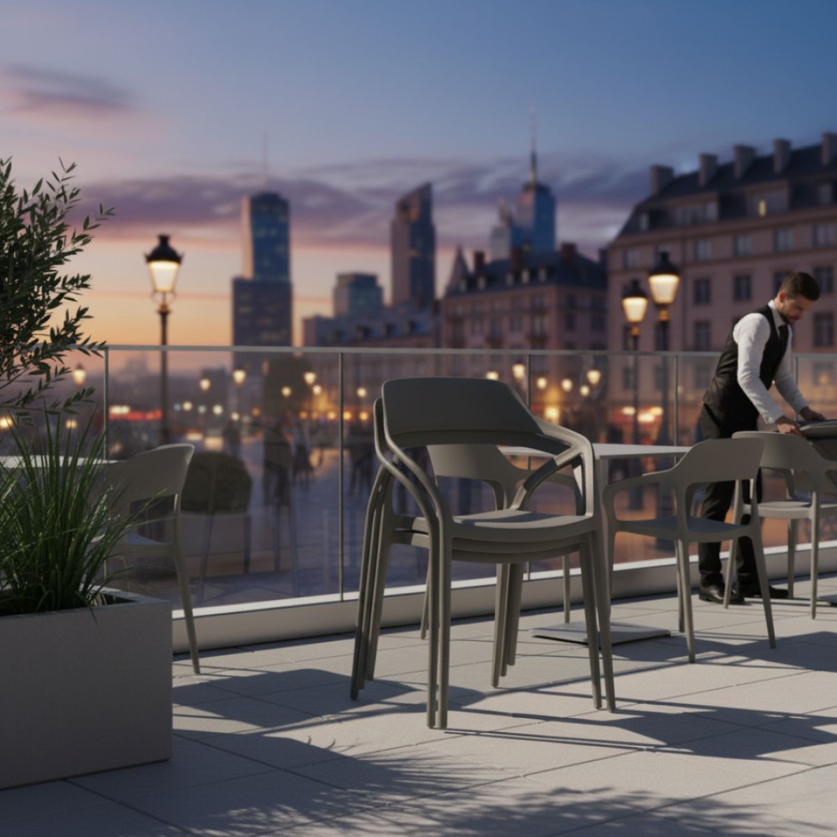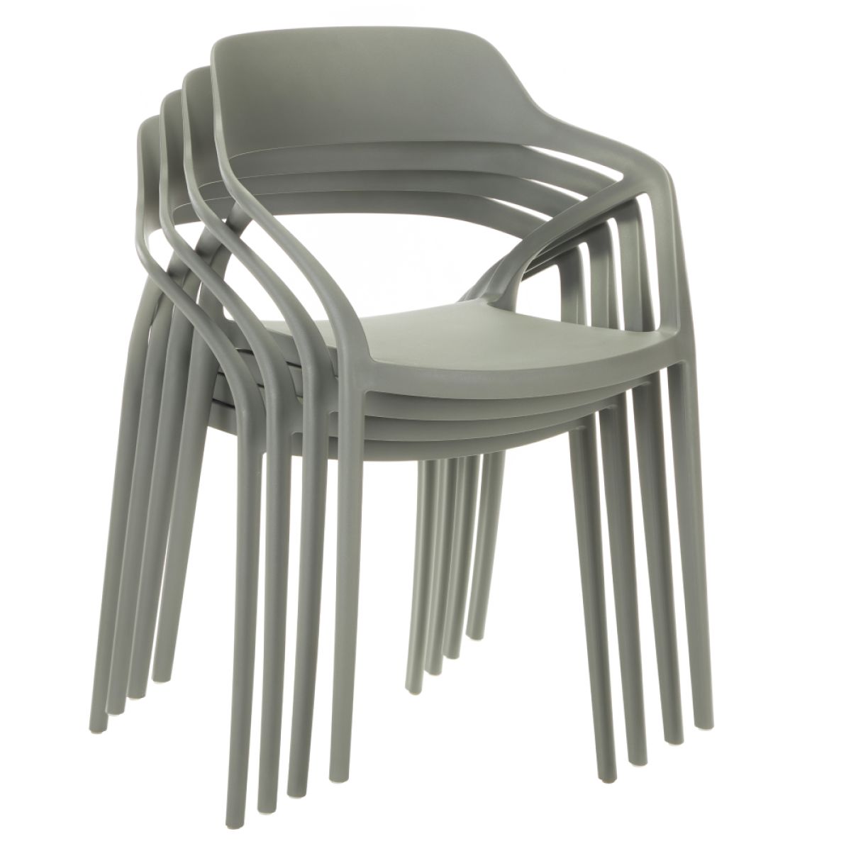 Material: plastic Culoare: gri Dimensiuni (lxAxh): 57x50x80 cm Înălţimea părţii de şezut: 45 cm Adâncimea părţii de şezut: 45 cm Lăţimea părţii de şezut: 40 cm Înălţime spate: 36 cm Lăţime spate: 43 cm Portanţă: 100 kg Greutate: 3,9 kg Scaun de sufragerie Scaun de grădină Stivuibil Potrivit pentru interior şi exterior Livrat asamblat