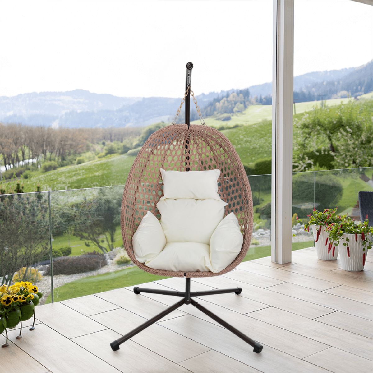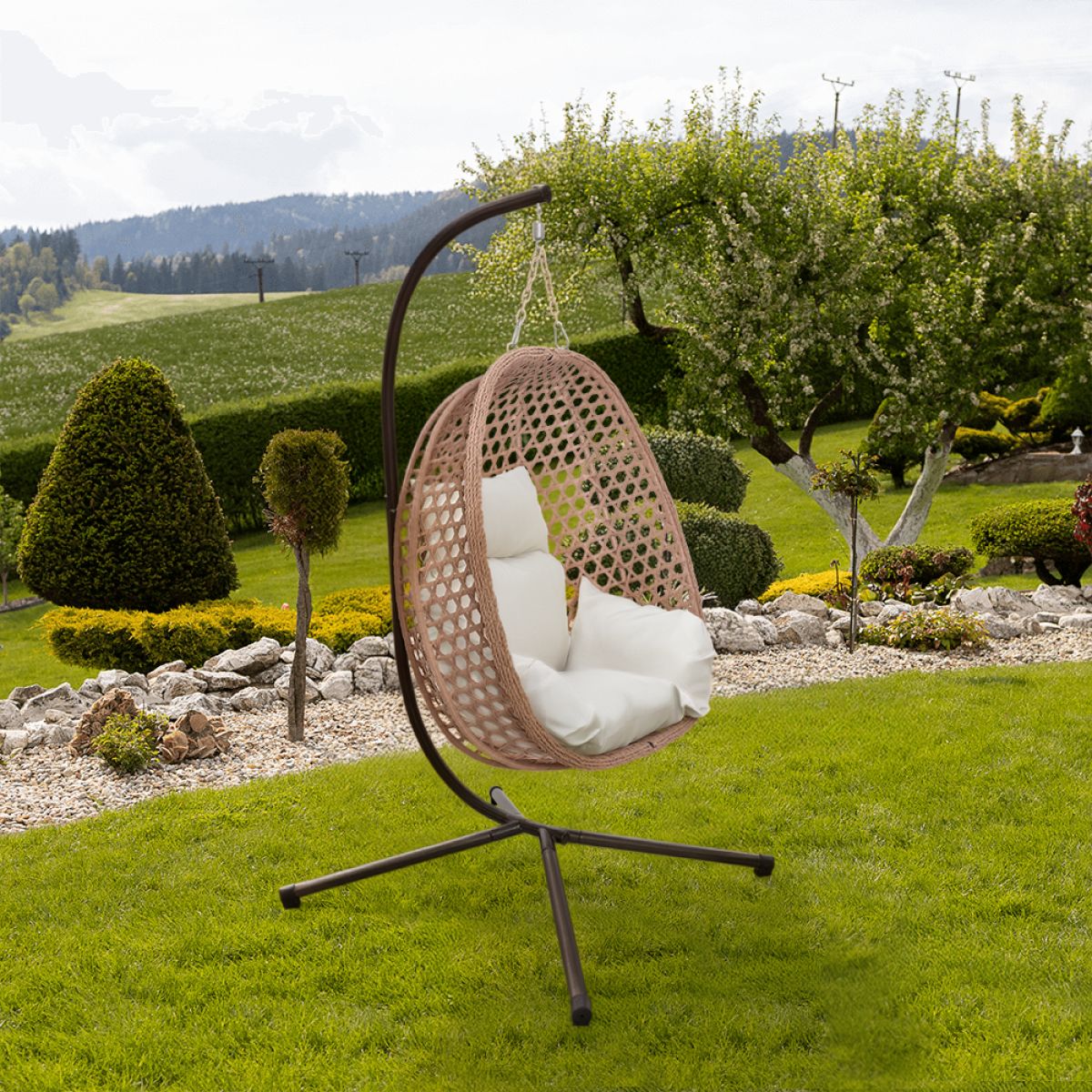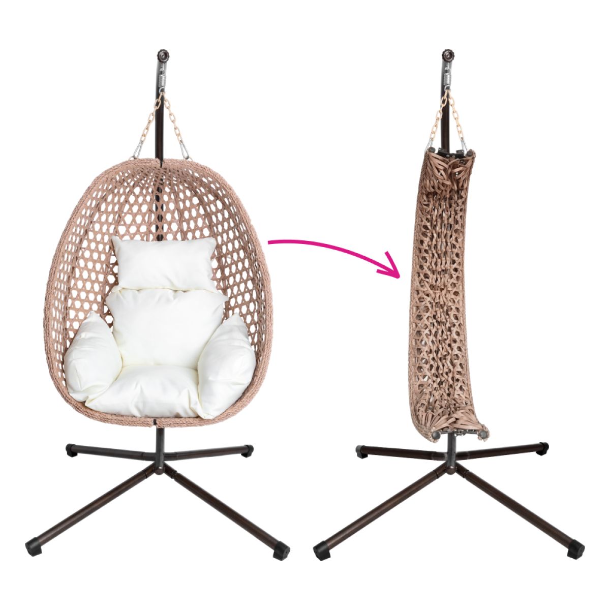 Scaun suspendat, pliabil, cupru/bej/crem, SANAN