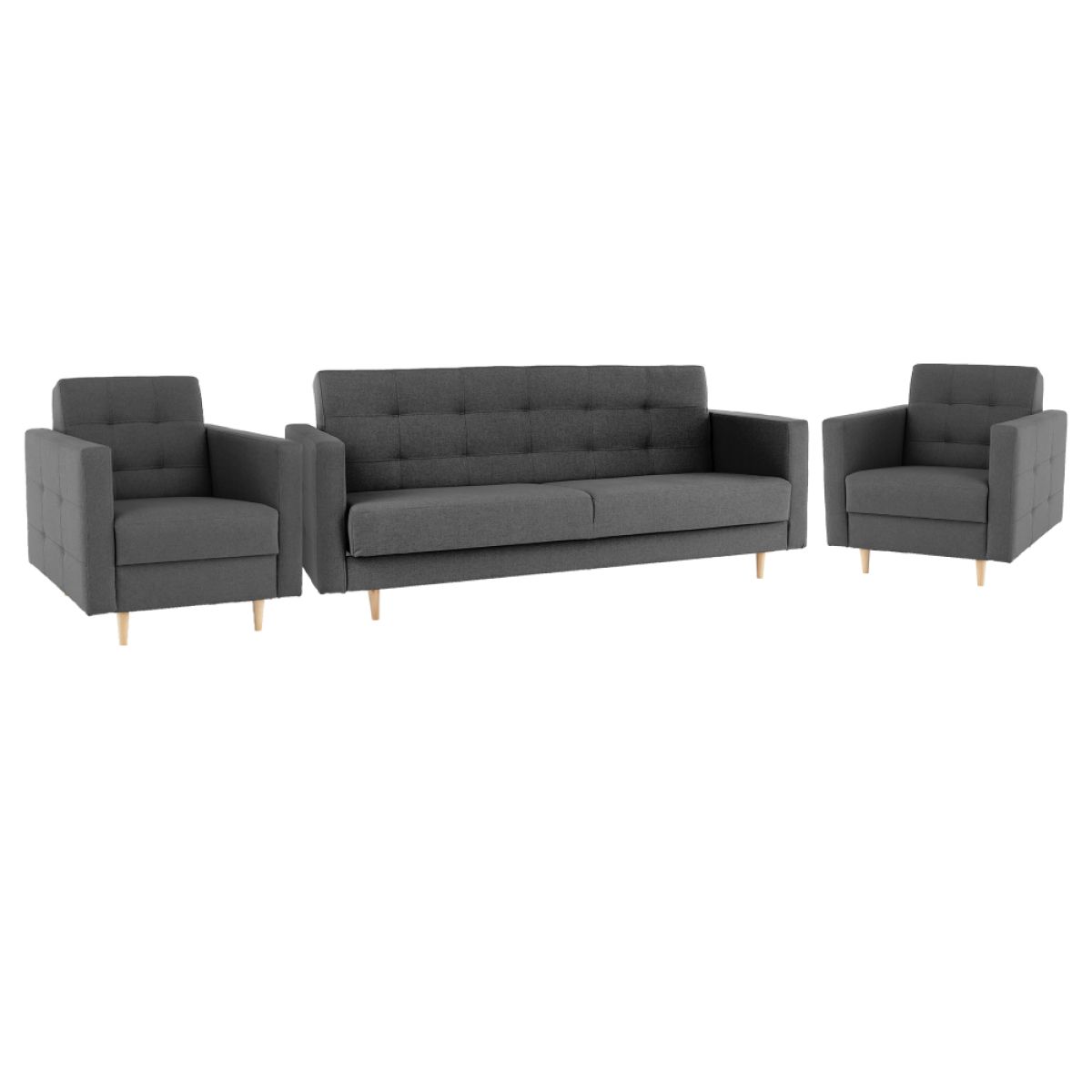 Set canapea + fotolii tapițate, gri închis, AMEDEEA