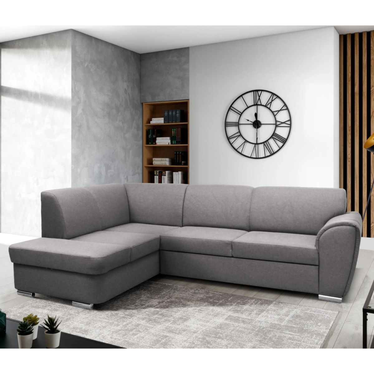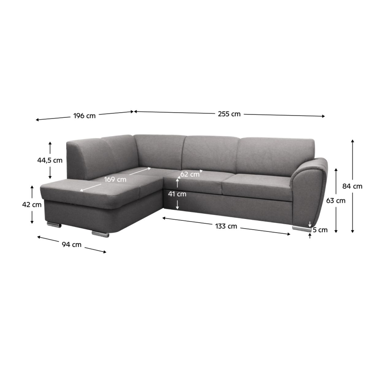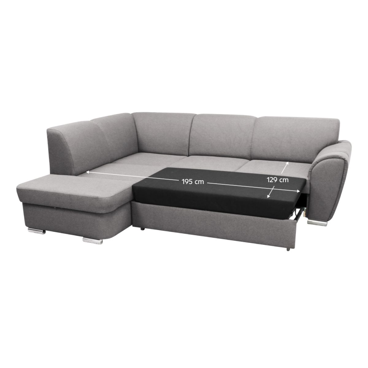 Material: ţesătură Malmo 90 Rezistenţa ţesăturii conform testului Martindale: 50.000 de cicluri de frecare Culoare: gri Dimensiuni (LxAxÎ): 255x196x84 cm Suprafaţa pentru dormit (LxL): 129x195 cm Înălţime scaun: 41 cm Adâncime scaun: 62 cm Înălţime spătar: 44,5 cm Lăţime scaun: 133 cm Dimensiuni otoman (LxL): 94x169 cm Înălţimea compartimentului inferior de la podea: 5 cm Înălţimea cotierei: 63 cm Umplutură: arcuri ondulate/spumă poliuretanică Picioare din plastic Culoare picioare: argintie Tapiţată integral Colţar extensibil Variantă pentru partea stângă Spaţiu de depozitare Livrată dezasamblată
