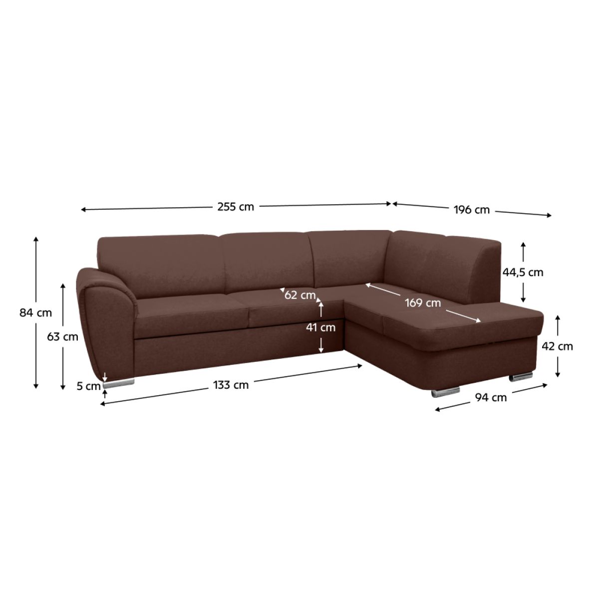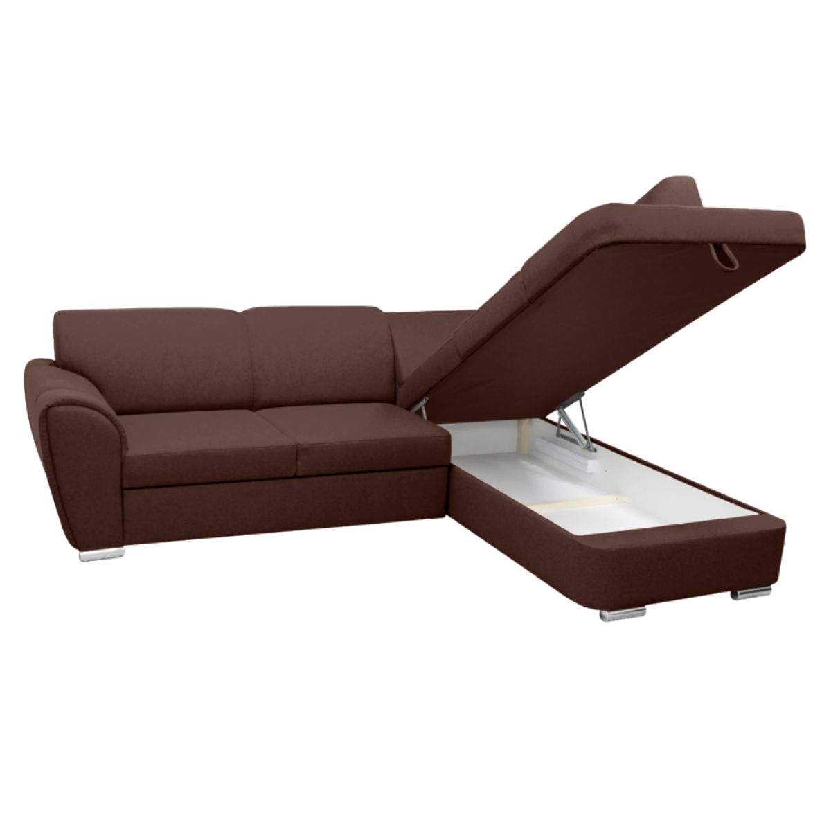 Material: ţesătură Malmo 26 Rezistenţa ţesăturii conform testului Martindale: 30 000 de cicluri de frecare Culoare: maro Dimensiuni (LxAxÎ): 255x196x84 cm Suprafaţa pentru dormit (LxL): 129x195 cm Înălţime scaun: 41 cm Adâncime scaun: 62 cm Înălţime spătar: 44,5 cm Lăţime scaun: 133 cm Dimensiuni otoman (LxL): 94x169 cm Înălţimea compartimentului inferior de la podea: 5 cm. Înălţimea cotierei: 63 cm Umplutură: arcuri ondulate/spumă poliuretanică Picioare din plastic Culoare picioare: argintie Tapiţată integral Colţar extensibil Variantă pentru partea dreaptă Spaţiu de depozitare Livrată dezasamblată