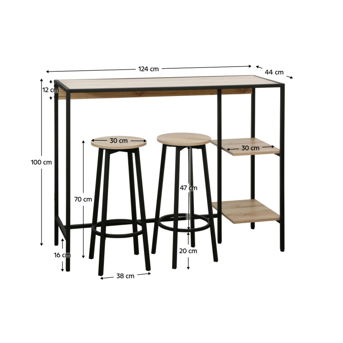 Set de bar 1+2, stejar/negru, POHOS