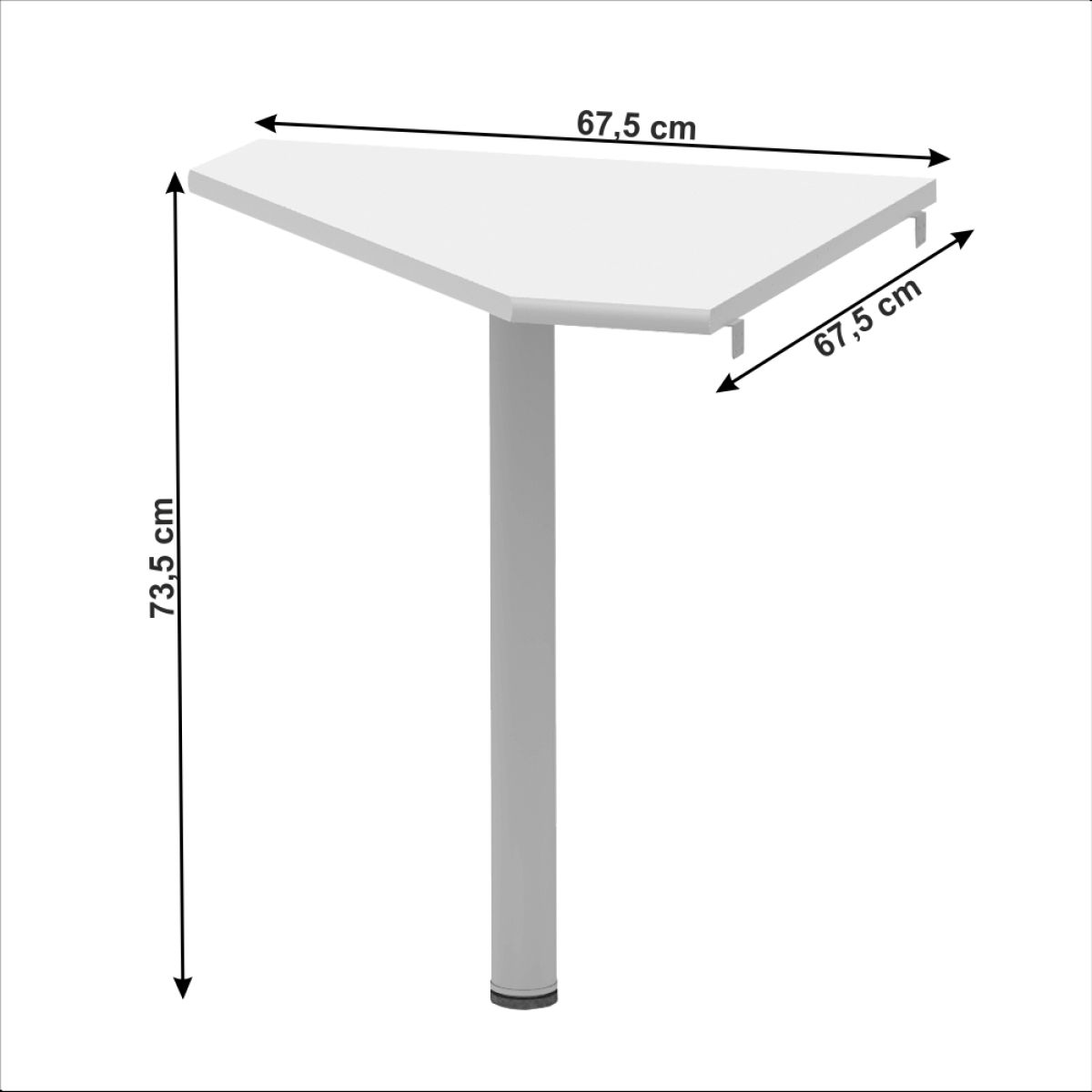 Dimensiunile mesei de colţ (lxhxA): 67,5x67,5x73,5 cm