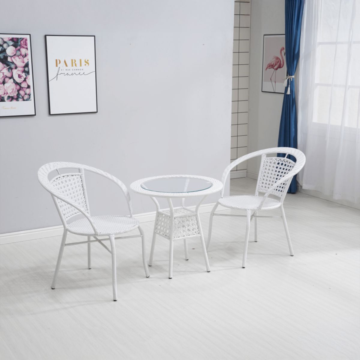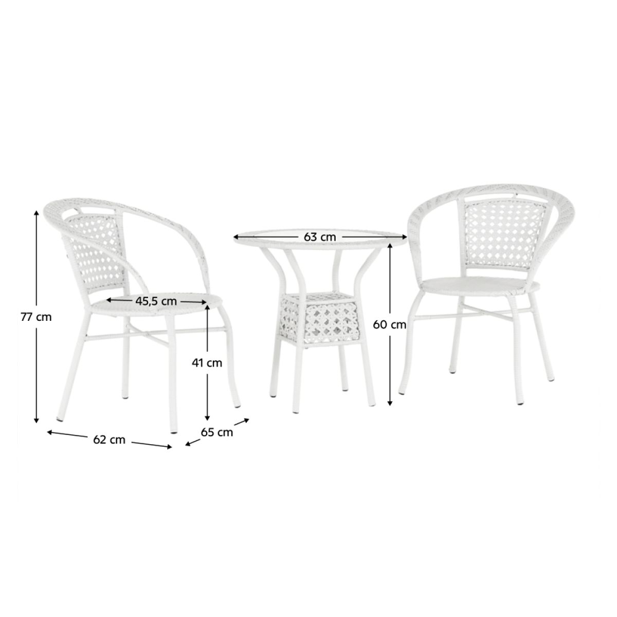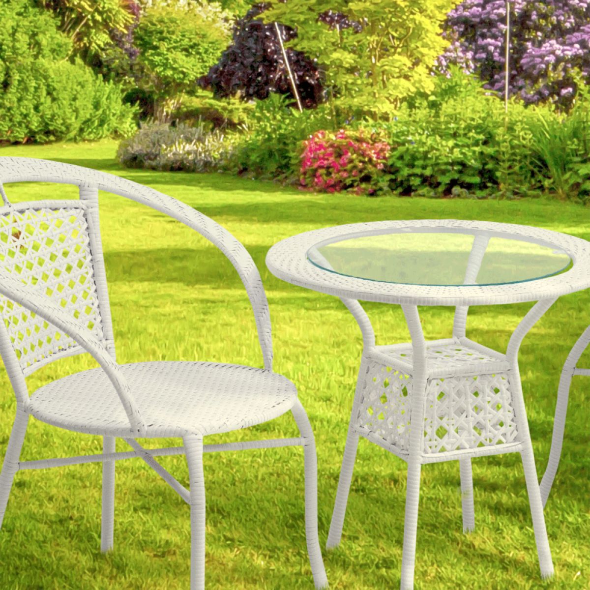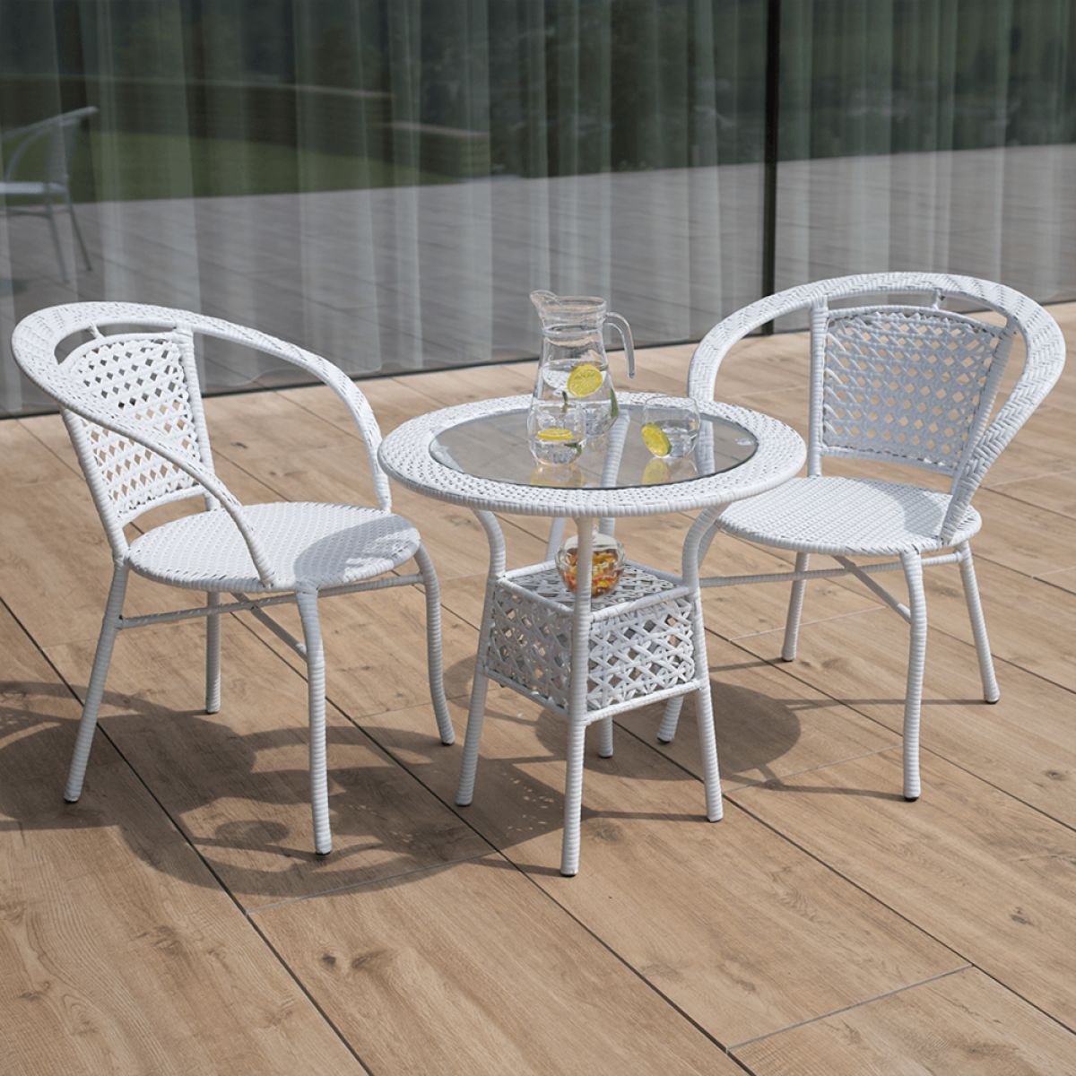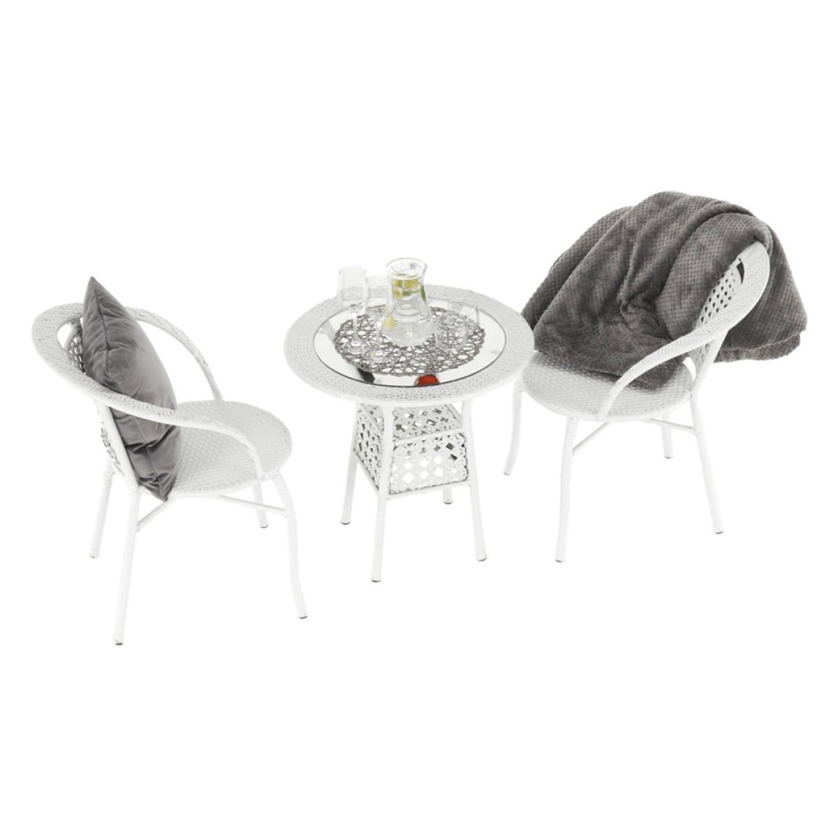 Material: ratan sintetic/ oţel/ sticlă temperată