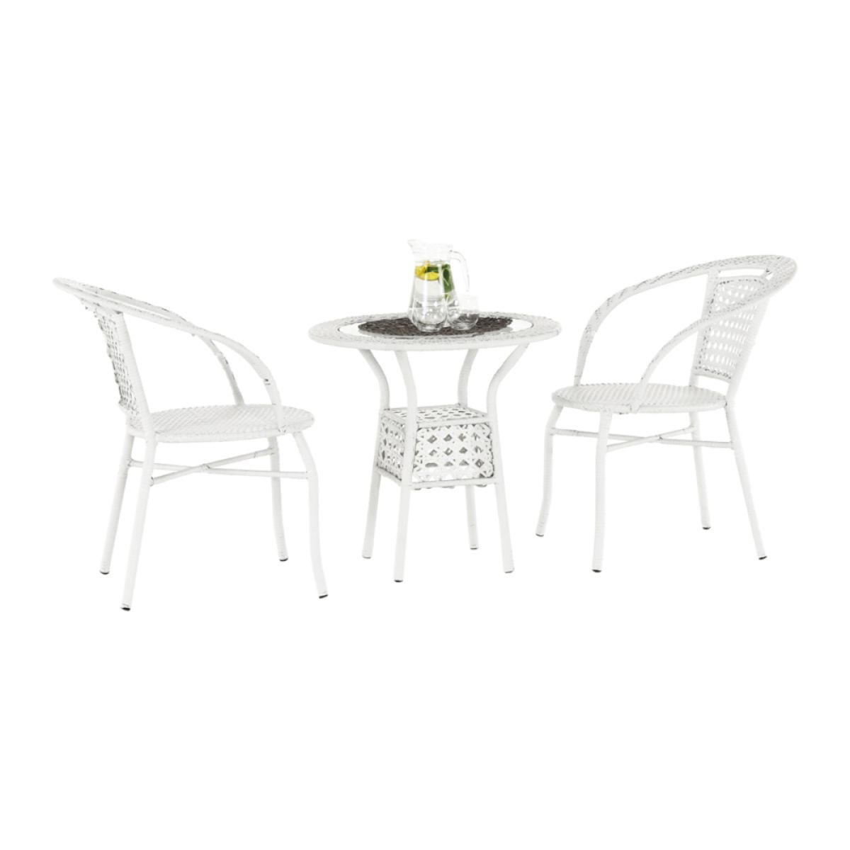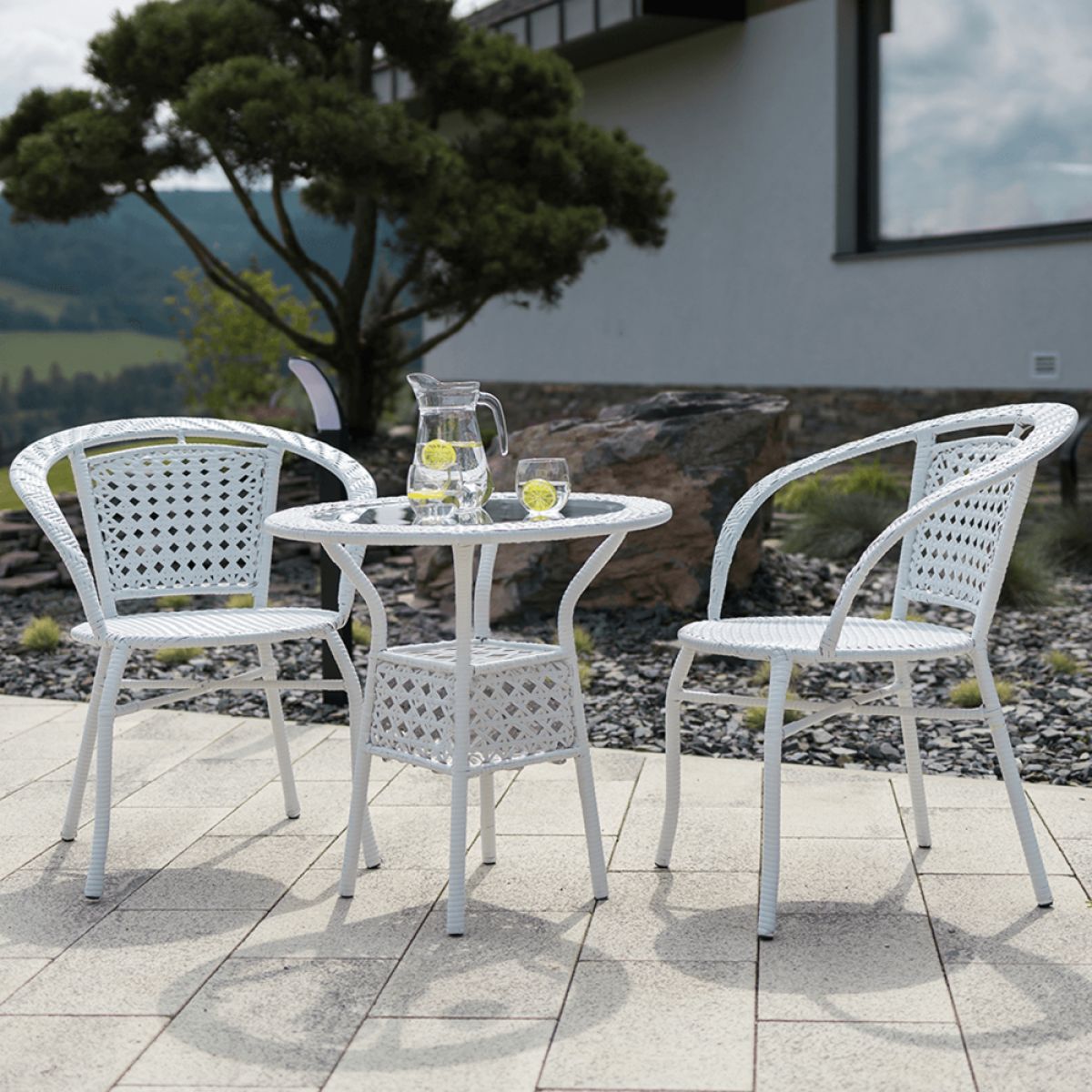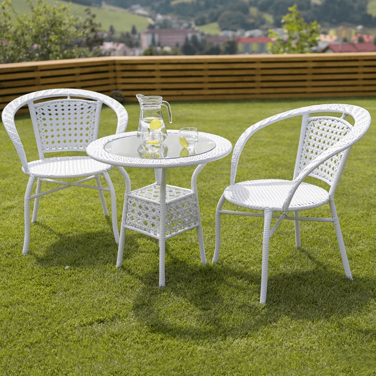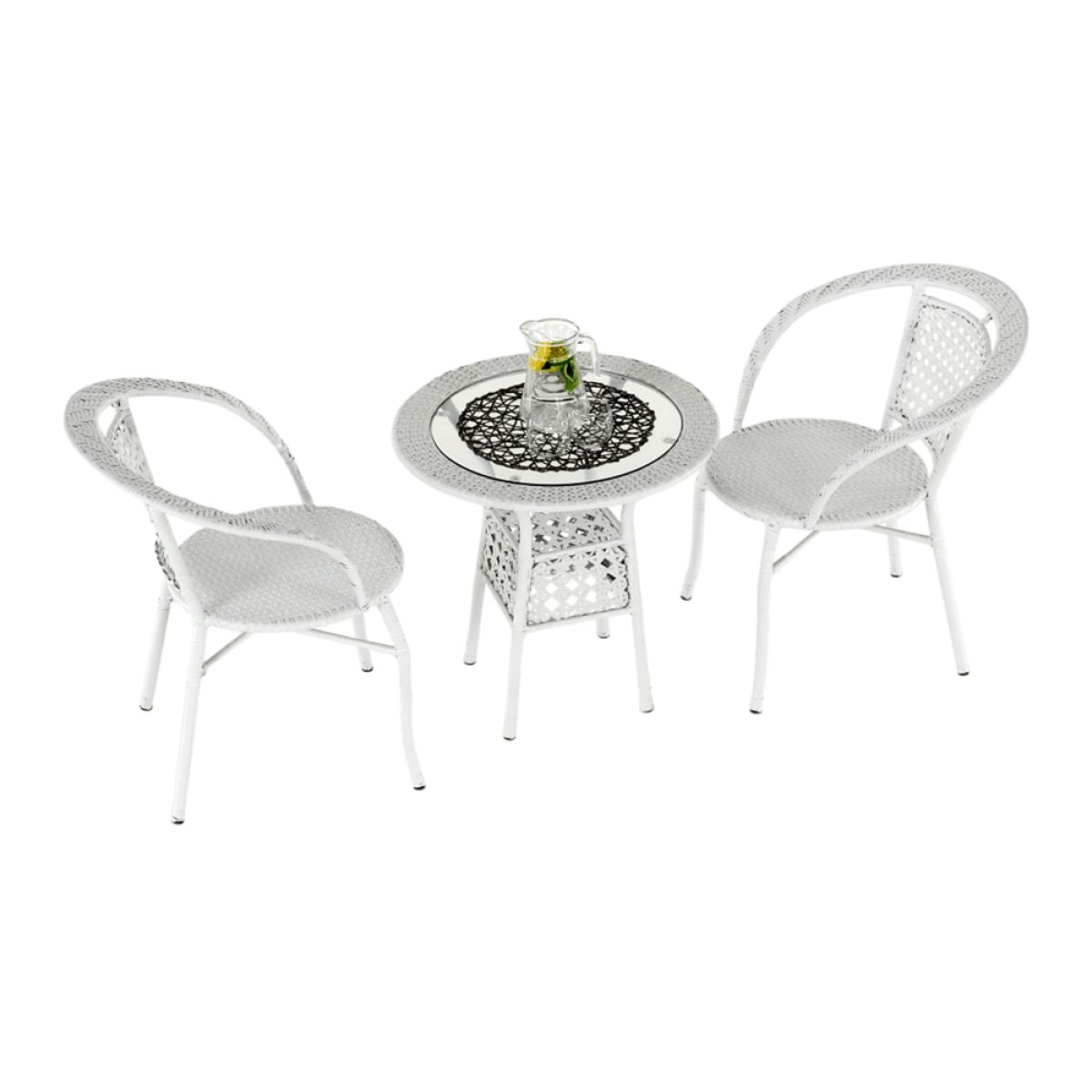 Set de grădină 1+2, din ratan, alb, JENA