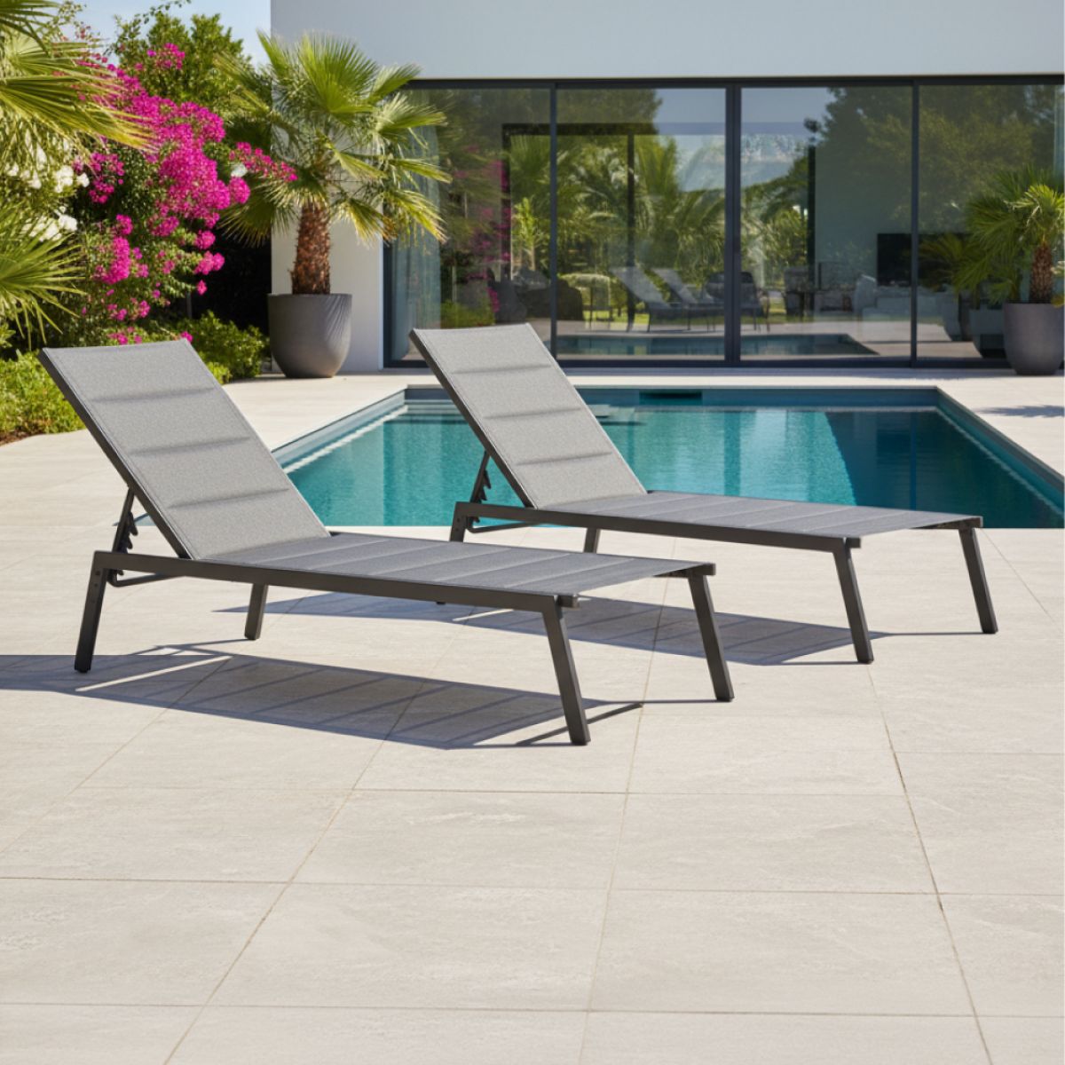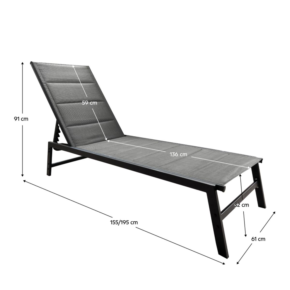 Şezlong de grădină poziţionabil, negru/gri, LOPEZ