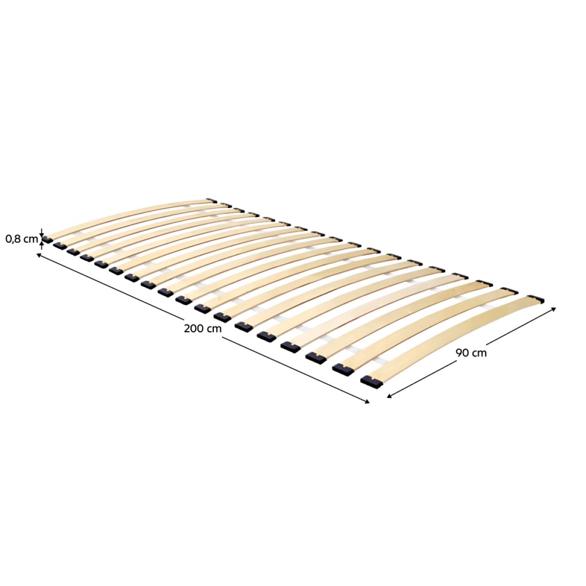 Material: lamele flexibile/bandă de tapiţerie/carcase din plastic Design: placaj de mesteacăn Dimensiuni (lxh): 90x200 cm Număr de lamele: 18 cm Grosimea lamelelor: 0,8 Lăţimea lamelelor: 5,3 cm. Spaţiul dintre lamele: 5,5 cm Portanţă: 150 kg/persoană Potrivit pentru toate tipurile de saltele Construcţie fără ramă Potrivit pentru paturi cu şine laterale pentru fixarea somierei Somieră roluibilă Lamele din placaj de mesteacăn conectate cu bandă de tapiţerie Montate în carcase de plastic Livrată cu şuruburi pentru fixarea pe pat Somiera nu este auto-portantă Fiecare somieră este cu 1 cm mai îngustă şi cu 5 cm mai scurtă faţă de dimensiunea specificată, de exemplu 90x200 = 89x195 cm.