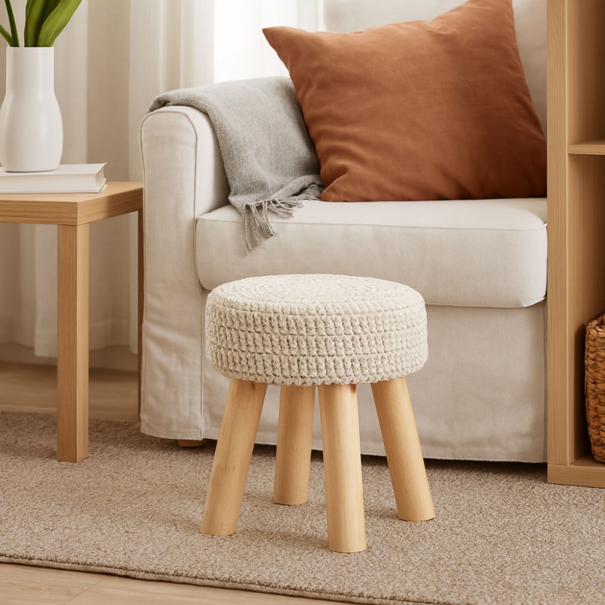 Taburet, lână bej, NAIDA