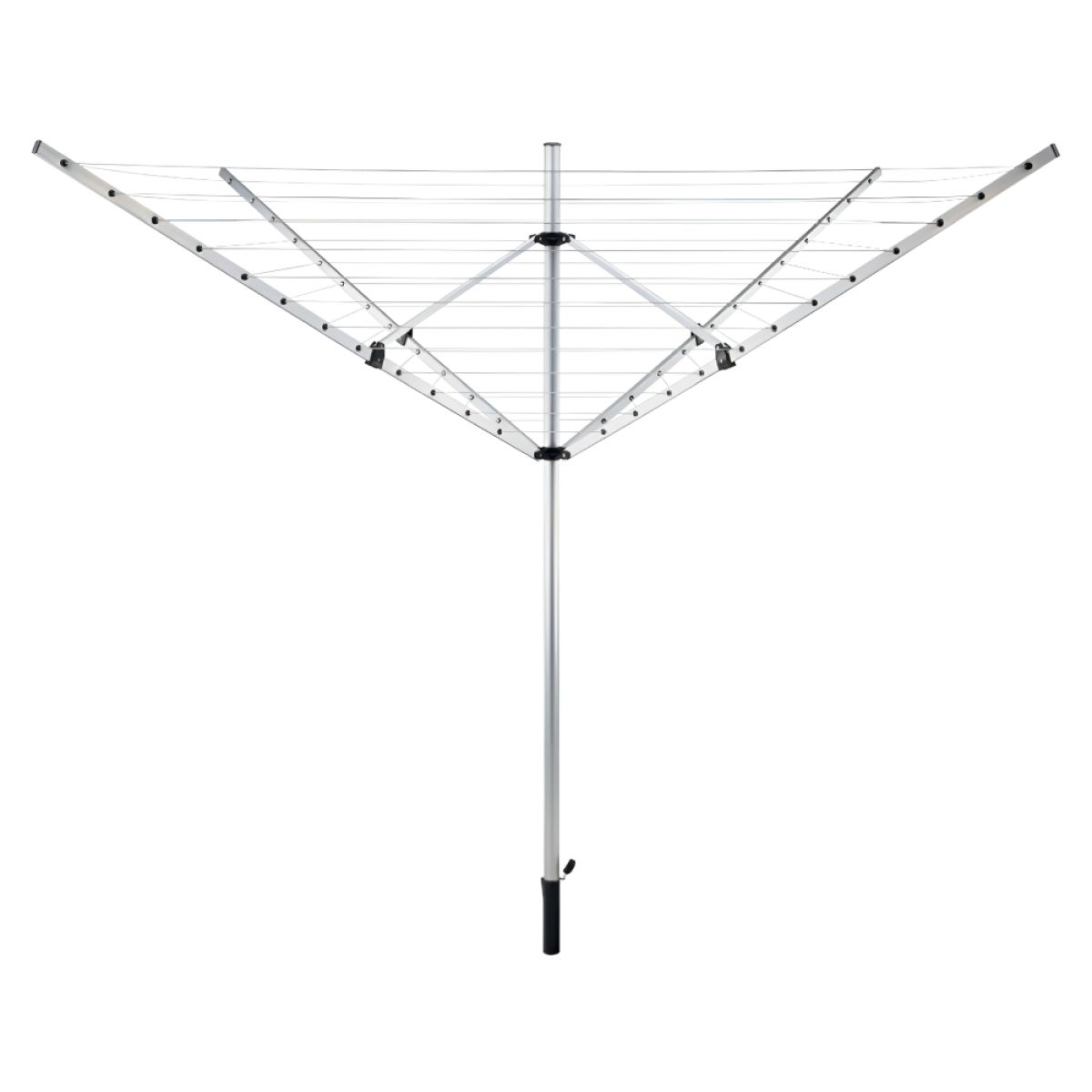 Material: aluminiu Culoare: argintie Dimensiunile uscătorului deschis (lxAxh): 260x185x180 cm Dimensiunile uscătorului închis (lxAxh): 13,5x13,5x181 cm Diametrul tijei de susţinere: 3,8 cm Portanţă: 20 kg Priză de împământare din plastic Rotativ 4 braţe Material de frânghie pentru uscare: PVC Lungimea firului pentru rufe: 50 m Utilizare în exterior Opţiune de reglare a înălţimii Acoperire anticorozivă Rezistent la intemperii Vă recomandăm să protejaţi produsul de intemperii pentru a prelungi durata de viaţă a produsului